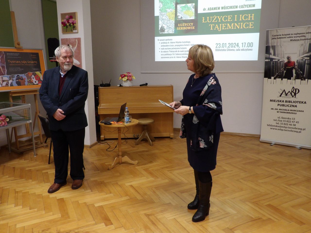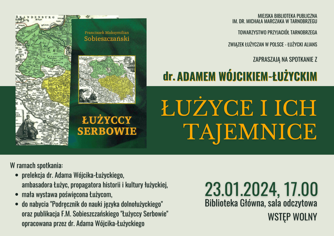 Z inicjatywy Towarzystwa Przyjaciół Tarnobrzega oraz Związku Łużyczan w Polsce, 23 stycznia 2024 roku, w Miejskiej Bibliotece Publicznej zorganizowano spotkanie „Łużyce i ich tajemnice”, które poprowadził dr Adam Wójcik – Łużycki - Ambasador Łużyc. W trakcie spotkania Pan Adam, z wrodzoną sobie swobodą i pasją, przybliżył niełatwą historię i urzekającą kulturę narodu, którego język, najbliższy polszczyźnie, znajduje się na liście ONZ języków zamierających. Uczestnicy spotkania zawędrowali do miast tej historyczno–geograficznej krainy leżącej pomiędzy Kwisą a Łabą. Poznali niektóre zwyczaje i obyczaje a nawet wysłuchali modlitwy „Ojcze Nasz” w języku Łużyczan. Mieli także możliwość zobaczyć małą wystawę poświęconą Łużycom, na której gospodarz spotkania zaprezentował mapy, publikacje i ceramikę regionalną. Można było również nabyć „Podręcznik do nauki języka dolnołużyckiego” oraz opracowanie „Łużyccy Serbowie” wydane przez Towarzystwo Przyjaciół Tarnobrzega i Związek Łużyczan w Polsce. „Łużyccy Serbowie” publikacja Franciszka Maksymiliana Sobieszczańskiego (1814-1878), który w latach 30-tych XIX wieku był zatrudniony w Bibliotece Dzikowskiej przez Jana Feliksa Tarnowskiego.