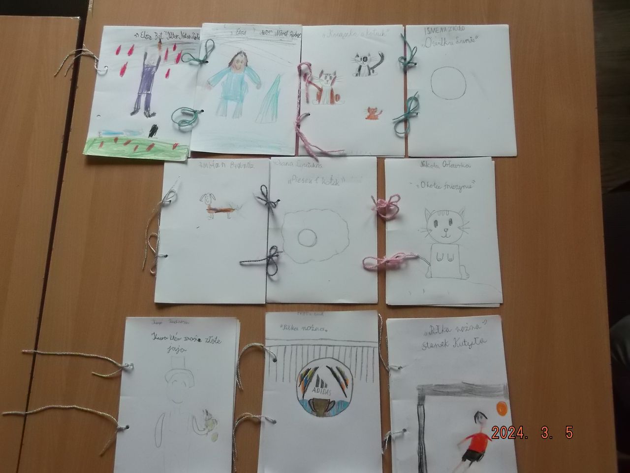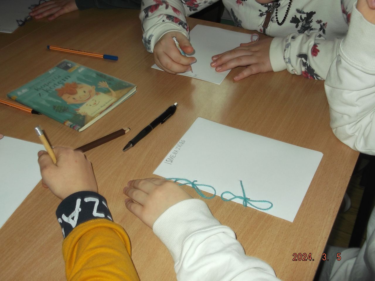 Mogli również bliżej poznać postać Juliana Tuwima – a to za sprawą książki A. Frączek pt. „Rany Julek!”, której fragmentów wysłuchali z ogromnym zainteresowaniem. Przyswojone literackie informacje oraz teksty literackie wprowadziły uczniów w świat twórczej weny by sami mogli wcielić się w pisarzy i pisarki. Podczas zabawy literackiej wspólnie stworzyli swoje pierwsze zbiorowe dzieło literackie, którego odczytanie wywołało mnóstwo śmiechu, ale także i dumy. Na zakończenie dzieci wykonały swoje autorskie książeczki z kartek przewiązanych sznurkiem, do których same wymyśliły tytuł i ilustracje. Kto wie?... Może w bibliotecznych zajęciach uczestniczył przyszły pisarz, pisarka, poeta lub poetka?
