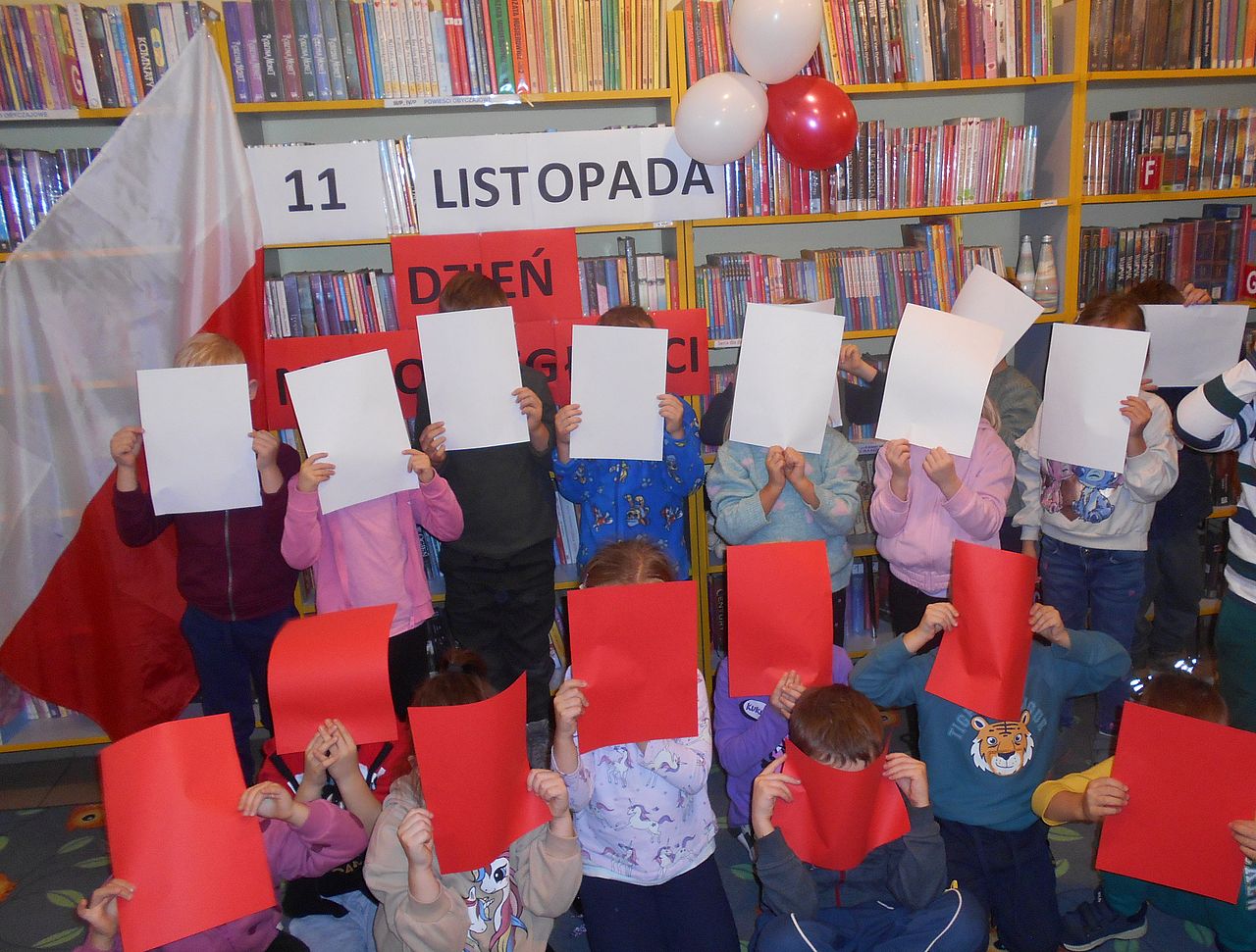 Ponadto zarówno w Bibliotece Głównej jak i filiach bibliotecznych w dniach 05-18.11.2024 przeprowadzono głośne czytania utworów patriotycznych dla najmłodszych, zajęcia literacko-plastyczne oraz edukacyjne bazujące na literaturze patriotycznej. Dzięki nim dzieci dowiedziały się jak brzmi „Alfabet Małego Polaka”, „Jaki znak Twój?” oraz że „Polska to ich Ojczyzna”. Na spotkaniach czytano wiersze Adama Asnyka i Władysława Bełzy, Czesława Janczarskiego, a także wykorzystano książki Michała Rusinka „Jaki znak twój?”, „Ilustrowaną historię Polski” czy „Elementarz Małego Polaka” oraz „Czy znasz ten kraj?”. Dodatkowo w Filii nr 1 odbyło się patriotyczne karaoke dla uczniów szkoły podstawowej, podczas którego wybrzmiały najpiękniejsze patriotyczne pieśni. Była to także świetna okazja do rozmowy o znaczeniu niepodległości i refleksji nad rolą młodych ludzi w podtrzymywaniu pamięci o przeszłości Polski.