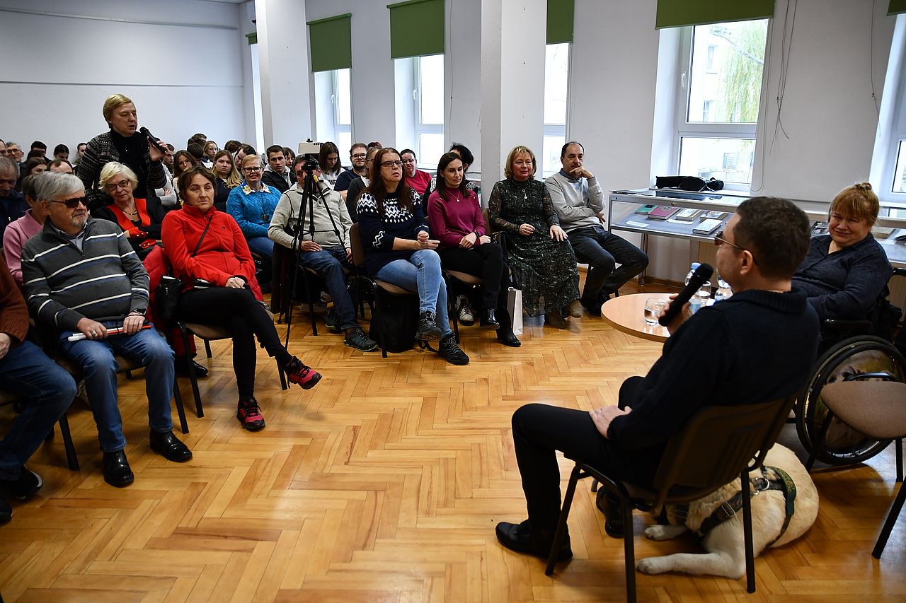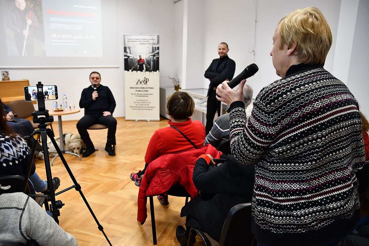 W Miejskiej Bibliotece Publicznej im. dr. M. Marczaka w Tarnobrzegu, dzięki współpracy z Tarnobrzeskim Kołem Polskiego Związku Niewidomych oraz firmą „Przestrzeń Dostępna”, 18 listopada 2024 r, odbyło się niezwykłe spotkanie z Maciejem Białkiem. Maciek Białek – historyk w zawodzie nauczyciela od 30 lat, od 25 lat jest osobą niewidomą. Pasjonat podróży – blisko 40 krajów. Gdy nie podróżuje, z zamiłowaniem czyta, gotuje i ogląda filmy – pomimo swojej niepełnosprawności. Na kanwie jego historii w 2015 roku powstał film „Carte Blanche” z Andrzejem Chyrą w roli głównej.
