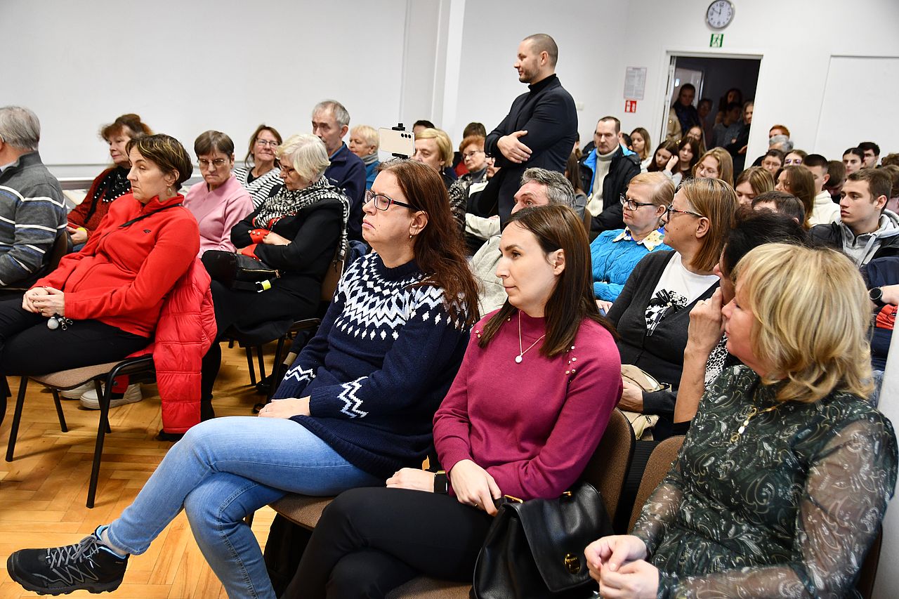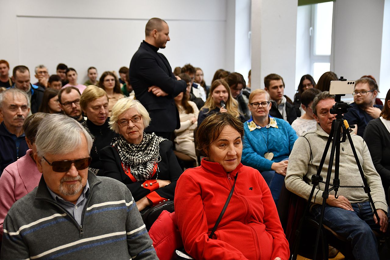 Licznie zgromadzeni uczestnicy spotkania, wśród których była także młodzież z jednej z tarnobrzeskich szkół średnich, zasypali naszego gościa pytaniami. Dzięki nim dowiedzieli się, jak Pan Maciej sprawdza kartkówki, jak pilnuje czy uczniowie nie ściągają na sprawdzianach, czy odnajduje się w roli aktora, a także o tym, jak nowe technologie, a co za tym idzie urządzenia, które obecnie mają wielkość paczki zapałek, osobom niewidomym i niedowidzącym ułatwiają codzienne funkcjonowanie w życiu i w pracy.