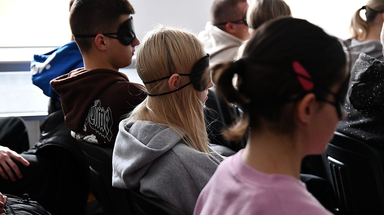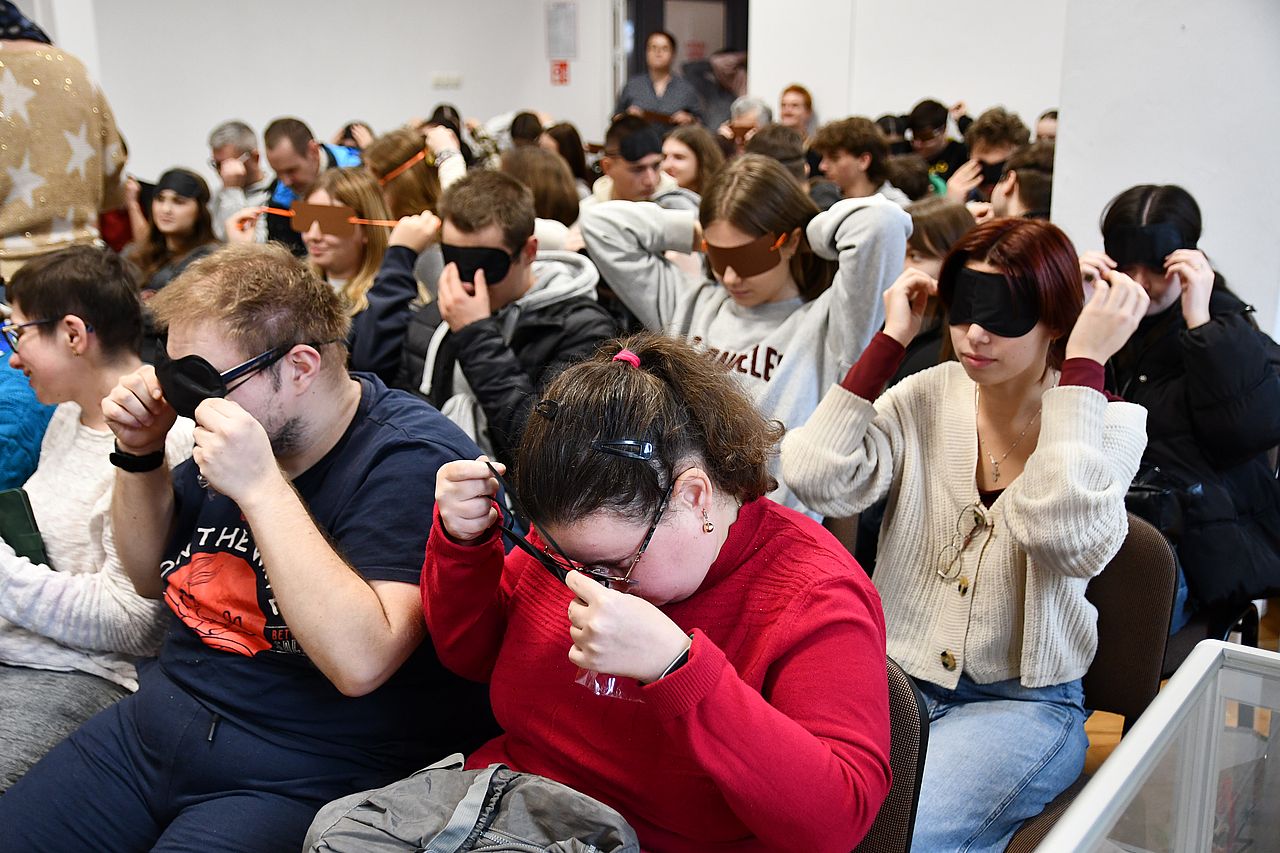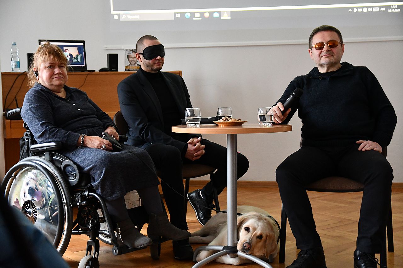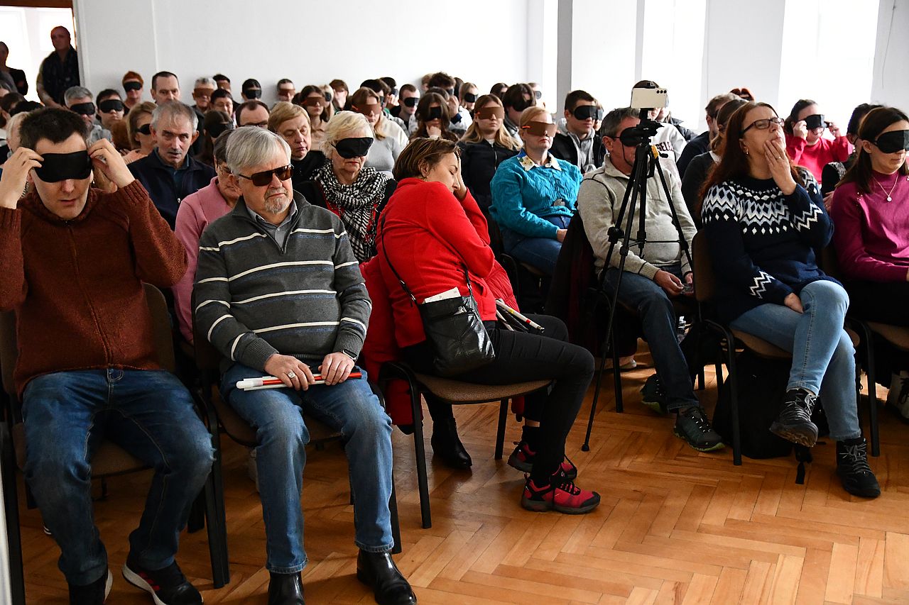 Na koniec spotkania obecni mogli na kilka minut przenieść się w świat osób niewidomych i przekonać, w jaki sposób „oglądają” filmy – po zasłonięciu oczu odsłuchali fragment filmu z audiodeskrypcją. Spotkanie poprowadziła Teresa Biało – prezes Koła Polskiego Związku Niewidomych w Tarnobrzegu oraz Jakub Nowak – specjalista ds. dostępności.
