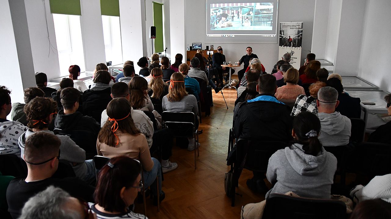 Podczas spotkania Maciej Białek opowiedział o tym jak doszło do tego, że powstał film zainspirowany jego doświadczeniami a także o początkach swojej choroby, którą – jak się okazało – starał się ukrywać przez światem przez 5 lat. Podkreślił, iż mimo jej postępowania ówczesna dyrektorka szkoły, w której pracował podjęła ryzyko umożliwiając mu kontynuacje pracy historyka i jest ogromnie wdzięczny, że do dzisiaj może wykonywać zawód, który kocha. Pan Maciej opowiedział także o swojej pasji – podróżach, dla których – jak żartobliwie stwierdził – przeszkodą nie jest brak wzroku, ale niedobór finansów. Jego ostatnią fascynacją są Bałkany, których mozaika etniczna, kulturowa, kulinarna, geograficzna oszałamia i wprawia w zachwyt. Pan Maciej udowodnił, że bez zmysłu wzroku także można w pełni odbierać świat, bowiem wyostrzają się pozostałe zmysły – dotyk, węch, słuch. Sam o sobie powiedział, że jako typowy mężczyzna – wzrokowiec, odkrył moc zapachów czy barwę i brzmienie głosu, które tak jak wygląd potrafią przykuć uwagę, zafascynować a nawet oczarować. Osoby niewidzące odbierają to, co często dla widzących jest niezauważalne i nieistotne.