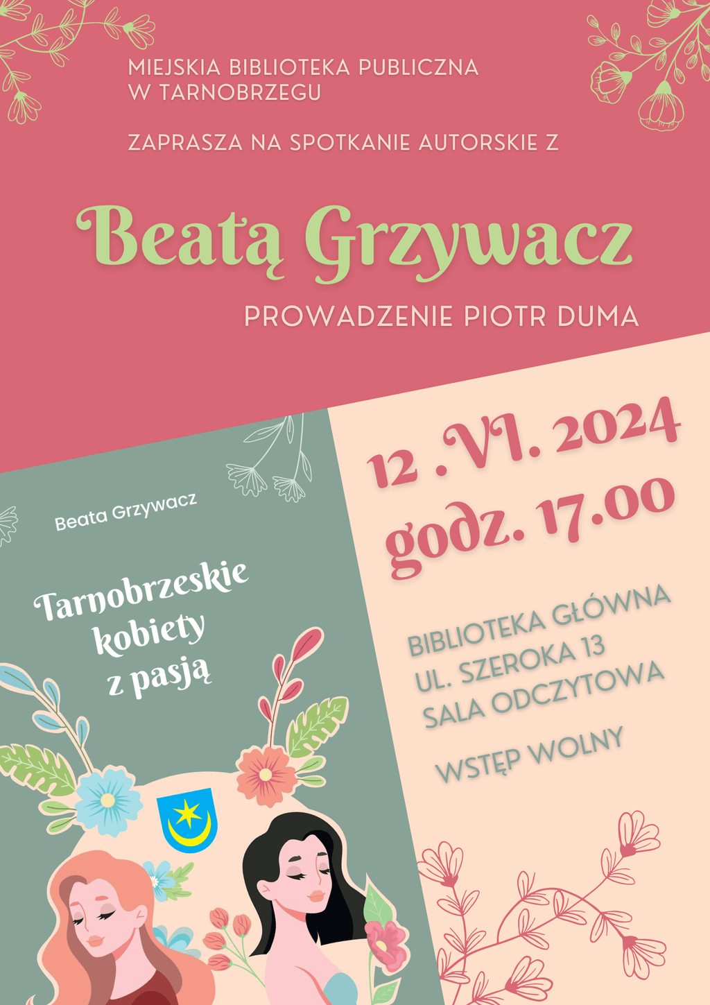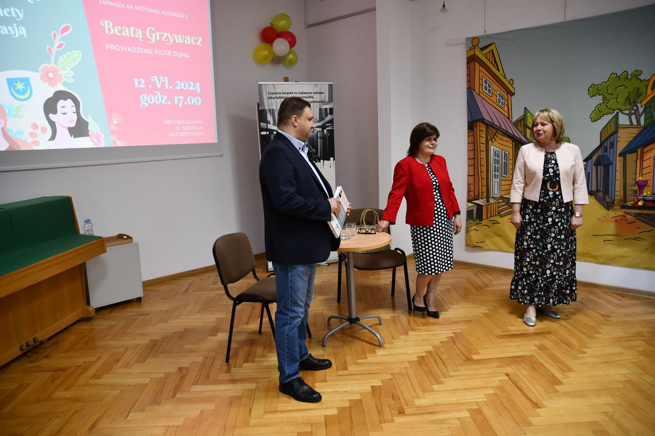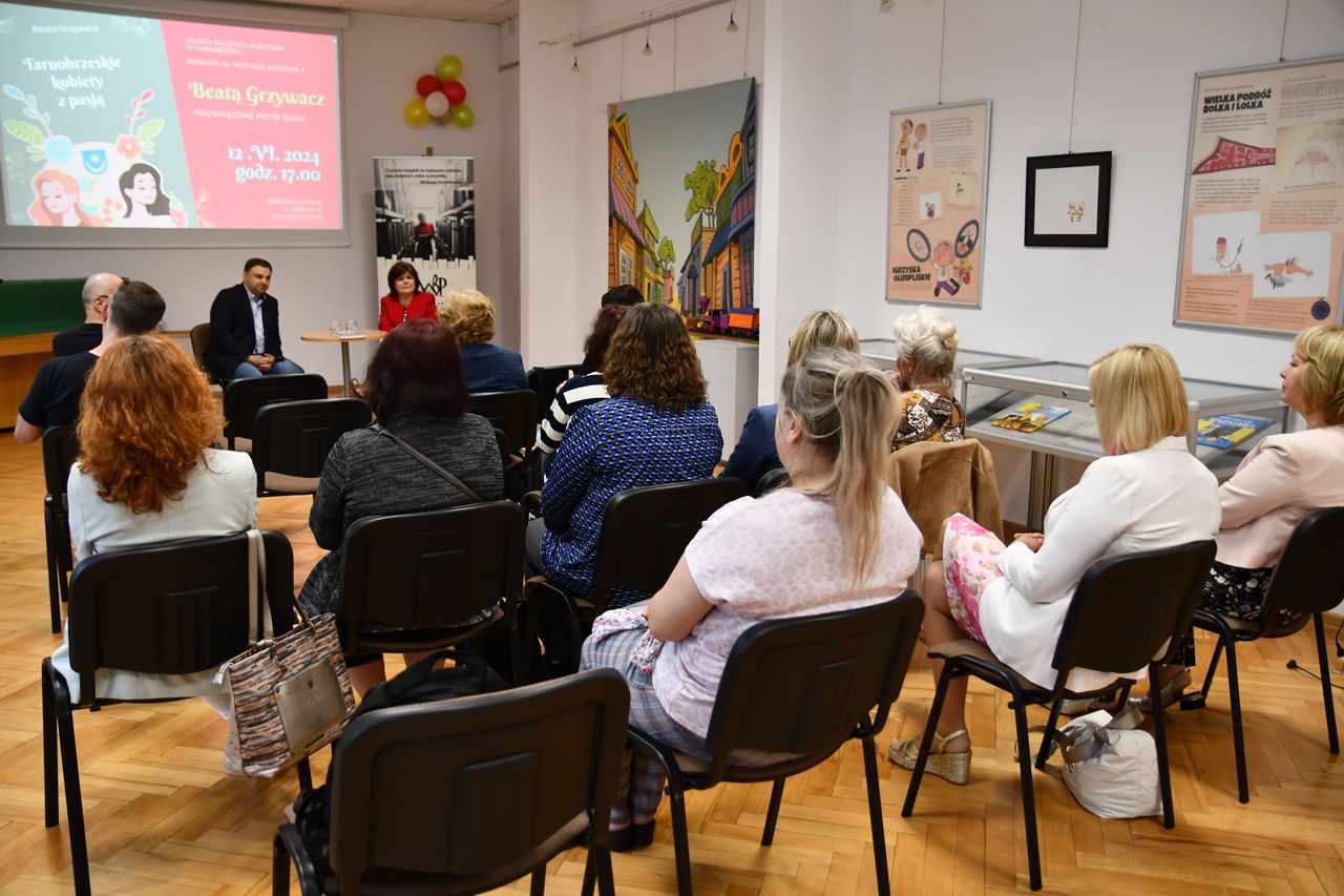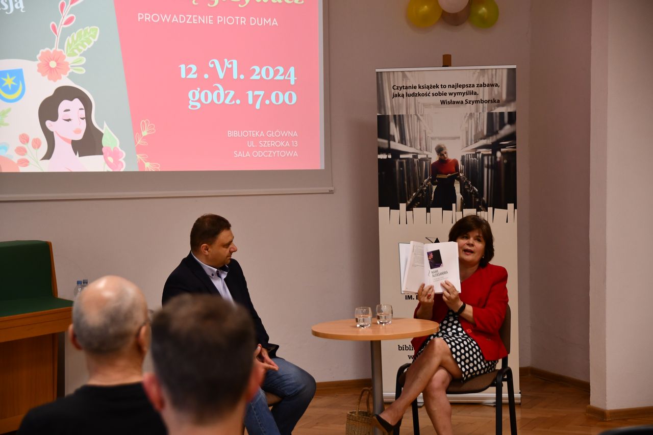 W środę, 12 czerwca 2024 roku, w Miejskiej Bibliotece Publicznej w Tarnobrzegu z czytelnikami spotkała się Beata Grzywacz, autorka książki „Tarnobrzeskie kobiety z pasją”. Beata Grzywacz jest prezeską Fundacji „Mieć Pasję”, inicjatorką wielu akcji charytatywnych i społecznych. Książka „Tarnobrzeskie kobiety z pasją” jest zbiorem rozmów, jakie przeprowadziła z kilkudziesięcioma paniami, które łączy Tarnobrzeg, chęć do działania oraz zaangażowanie w rozwój własnych zainteresowań. Uczestnicy spotkania poprowadzonego przez Piotra Dumę mieli możliwość poznania nie tylko kulis pracy nad książką, planów wydawniczych, ale przede wszystkim idei, jaka towarzyszy Pani Beacie przy pracy. Publikacja wywiadów z tarnobrzeżankami to niekonwencjonalne wsparcie innych, by uwierzyły w siebie i dążyły do osiągniecia wytyczonego celu.