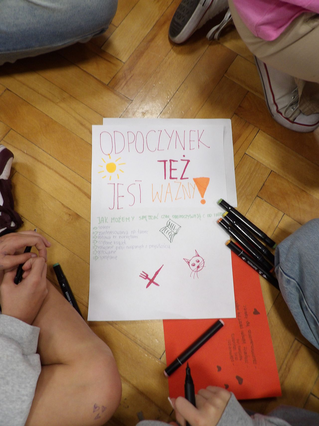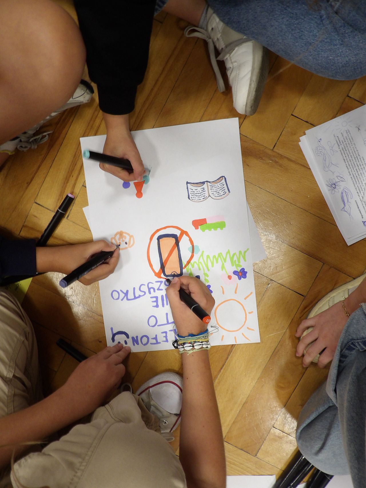 Młodzież z tarnobrzeskich szkół miała okazję uczestniczyć w wyjątkowych warsztatach prowadzonych przez Panie psycholog z Poradni Psychologiczno-Pedagogicznej w Tarnobrzegu. Tematem pierwszego spotkania były „Uzależnienia i zagrożenia w sieci a higiena cyfrowa młodzieży”. Dr Renata Matusiak zapoznała młodzież z teorią związaną z uzależnieniem od mediów cyfrowych: Internetu, komputera czy telefonu. Powiedziała czym jest higiena cyfrowa a także podzieliła się sposobami na to, jak dbać o bezpieczeństwo w sieci. Omawiając różnice między uzależnieniem a nadużywaniem mediów społecznościowych, prowadząca spotkanie wskazywała na konieczność ograniczenia czasu spędzanego w sieci, uświadamiając jednocześnie z jakimi konsekwencjami zmaga się młodzież nieprzestrzegająca higieny cyfrowej. Grupa określiła również pozytywne i negatywne czynności, które mają miejsce w sieci. Oprócz słuchania muzyki, czytania e-booków, oglądania filmików na tik-toku, pisania ze znajomymi wymienione zostały przez młodzież: stalking, hejt, niewłaściwe kontakty, cyberprzemoc.