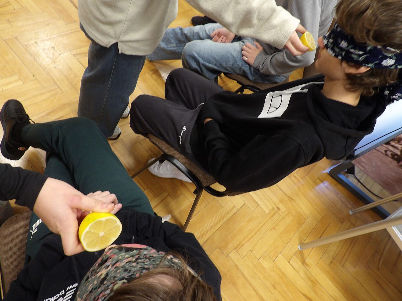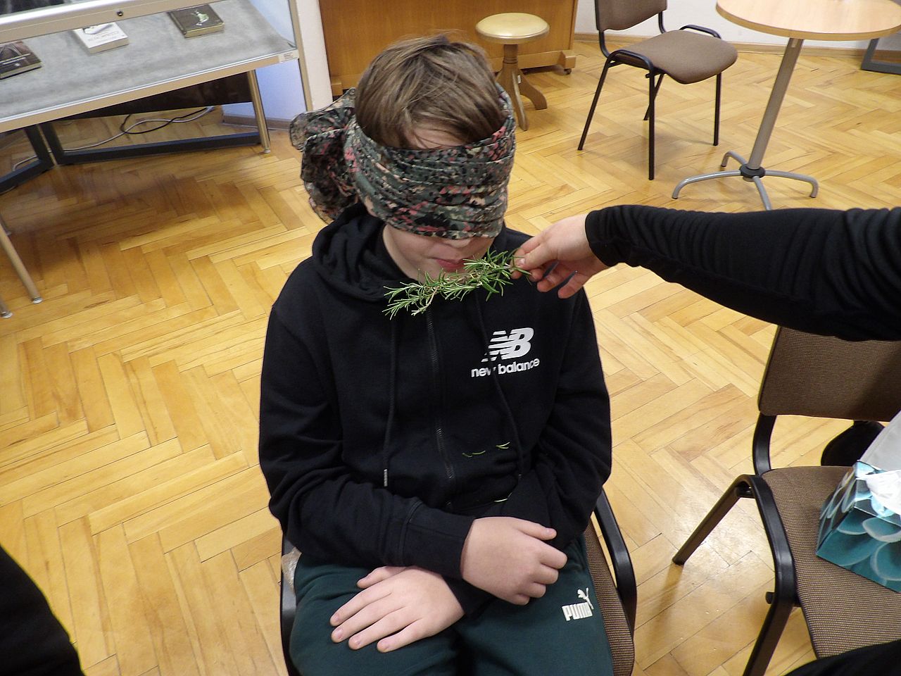 Drugie spotkanie, prowadzone przez Irminę Wójcik-Gronczewską dotyczące „Terapeutycznej aromaterapii jako metody radzenia sobie ze stresem” skupiało się na mocy zapachów. Prowadząca mówiła o tym, jaka jest rola zmysłu węchu oraz czym jest aromaterapia. Rozpoznawanie z zamkniętymi oczami naturalnych zapachów owoców i aromatycznych przypraw: kawy, herbaty, mięty, cynamonu, lawendy było nie lada wyzwaniem dla ochotników. Powstała tym samym piramida ulubionych, najczęściej rozpoznawanych substancji zapachowych, kojarzona z konkretnymi wspomnieniami z życia młodych ludzi. Okazało się, że kontakt z ulubionymi zapachami działa korzystnie na psychikę i emocje – łagodzi napięcie nerwowe, uspokaja, poprawiają nastrój, dodaje energii.