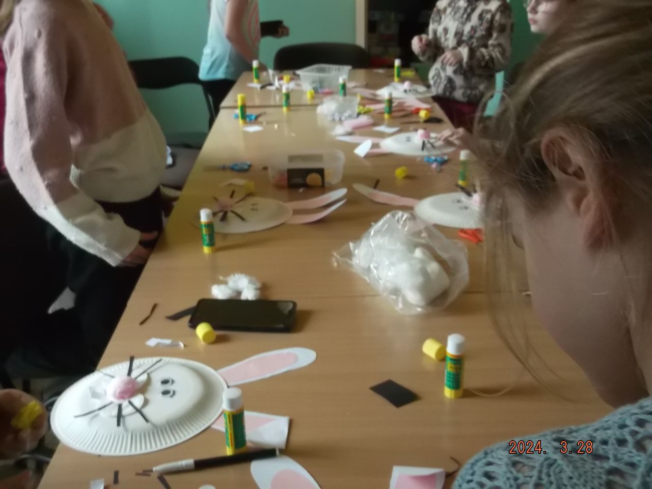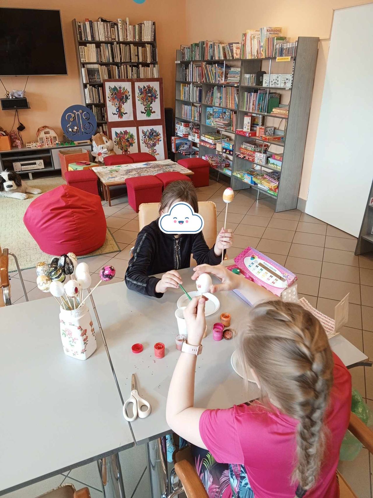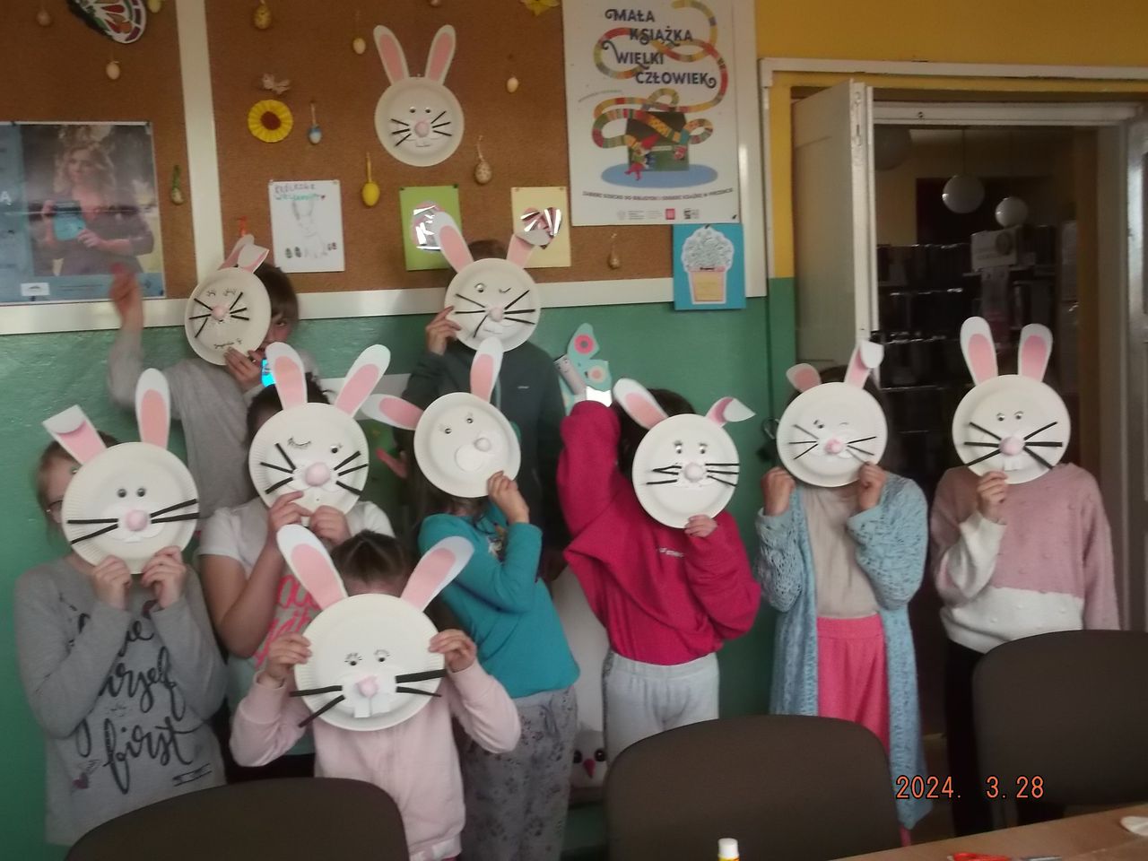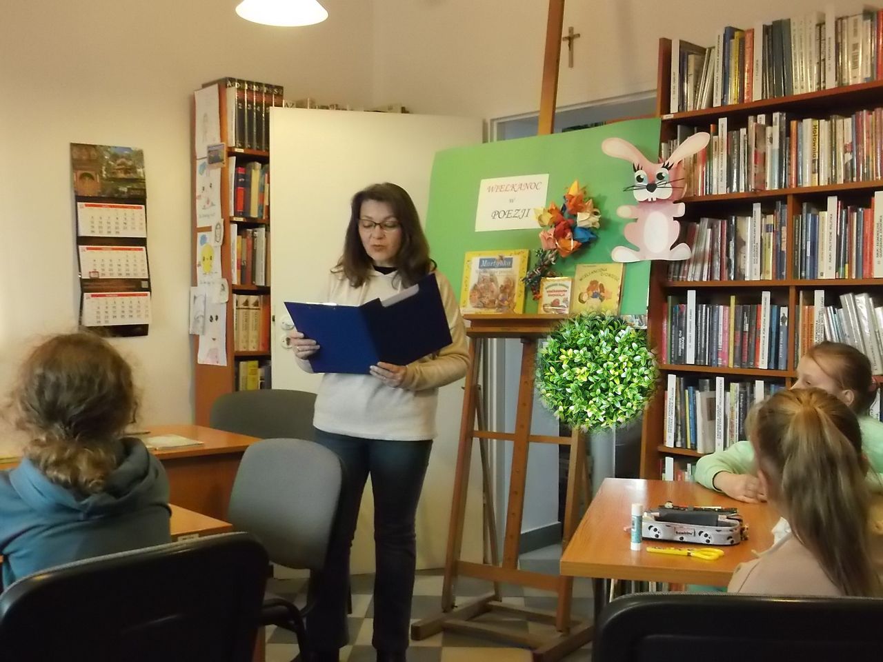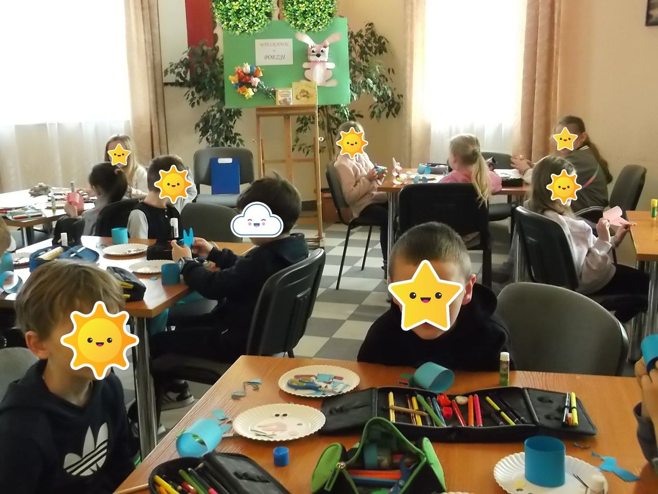 Na spontanicznych zajęciach plastycznych w Filii nr 6 na os. Sobów dzieci robiły wesołe króliczki wielkanocne. Uczestnicy zajęć po skończonej pracy plastycznej bawili się wśród książek, czytali i rozmawiali spędzając miło czas w swojej osiedlowej bibliotece. Podczas kolejnego spotkania w Filii pt. „Wielkanocne to i ovo” uczniowie z osiedlowej szkoły wysłuchały wierszy zamieszczonych w miesięczniku Świerszczyk, nawiązujących do Świąt Wielkanocnych - N. Usenko – „Świętowanie”, M. Strzałkowska – „Jajka pysznego, dyngusa mokrego”. Z tego popularnego pisma dla dzieci, uczniowie dowiedzieli się także o kilku zwyczajach wielkanocnych w innych krajach, m.in.. o trawnikowych turlaczach ze Stanów Zjednoczonych, o książkowych świętach w Norwegii, gdzie w okresie wielkanocnym w księgarniach pojawiają się specjalne świąteczne wydania kryminałów, tzw. „paskekrim”. Gwoździem programu było dziś wykonanie pracy plastycznej metodą Iris folding – kartki świątecznej przedstawiającej kolorowe jajko (łac. ovo).
