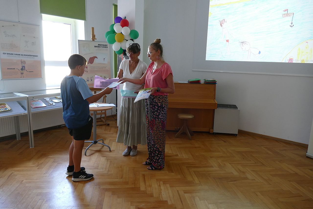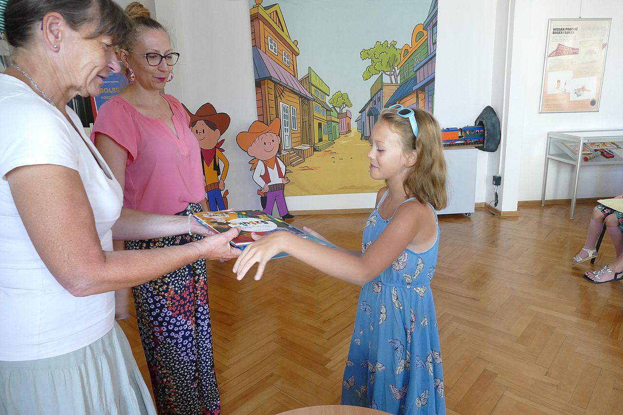 Podczas spotkania podsumowującego wakacyjny konkurs plastyczny, na który przybyli laureaci konkursu oraz jego uczestnicy, oficjalnie ogłoszono osoby nagrodzone oraz wyróżnione. Konkurs plastyczny „Podróże Bolka i Lolka” realizowany był w ramach „Akcji Lato” a jego tematem przewodnim byli znani i lubiani bohaterowie bajek Bolek i Lolek, którzy wraz z autorami prac „Podróżowali” po różnych zakątkach Polski i świata. Spośród nadesłanych prac, po sprawdzeniu zgodności z regulaminem, zwracając uwagę na samodzielność wykonania pracy, pomysłowość, estetykę oraz zgodność z tematyką konkursu, komisja konkursowa w składzie: Przewodnicząca – Karolina Bednarska – absolwentka Wydziału Sztuki Uniwersytetu Pedagogicznego im. KEN w Krakowie, malarka, graficzka, członkowie: Sylwia Bornos i Katarzyna Opioła – pracownicy Działu Udostępniania, Informacji i Promocji MBP w Tarnobrzegu, przyznała następujące nagrody: