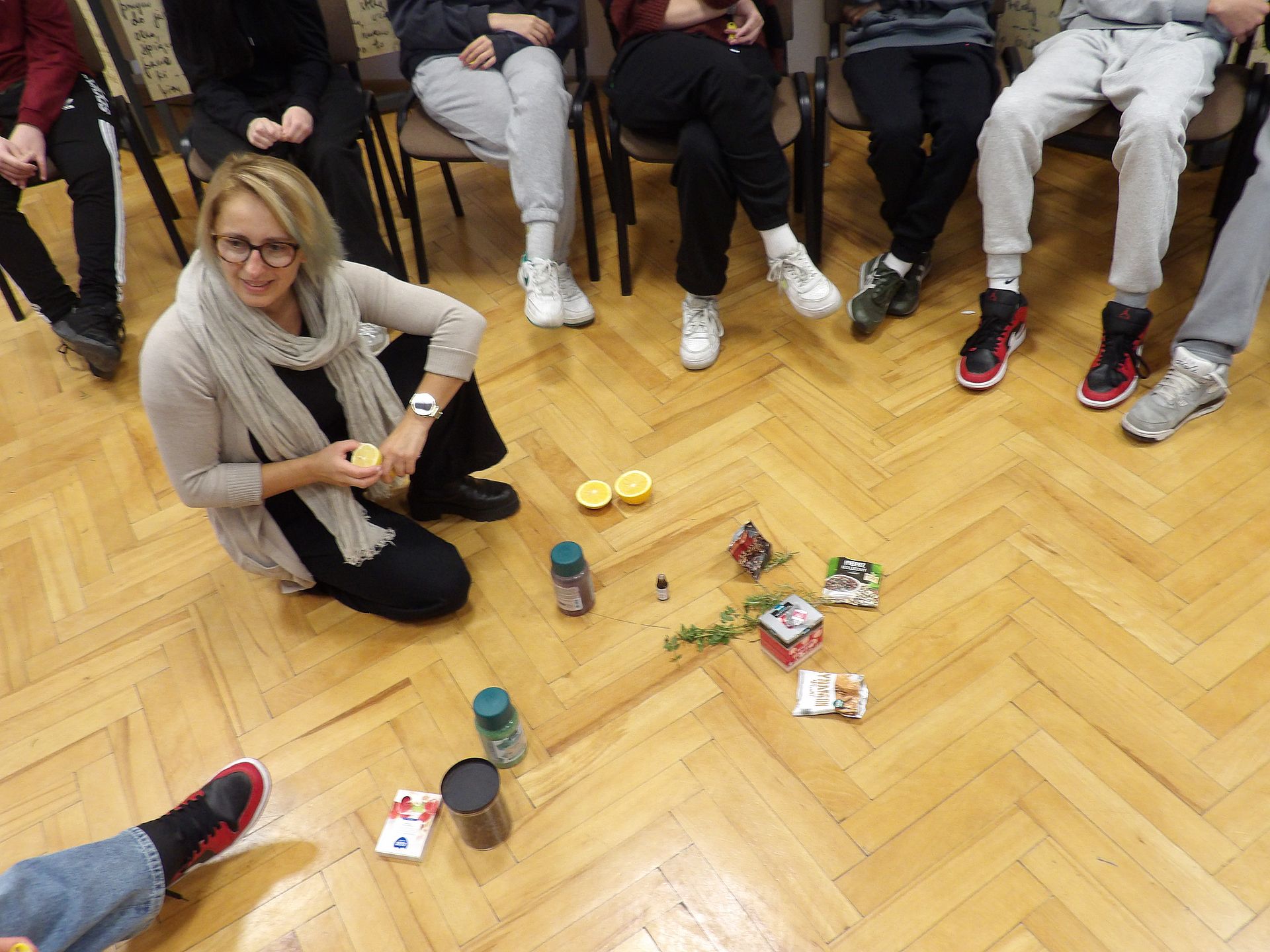 Dodatkowo, panie z Poradni Psychologiczno-Pedagogicznej w Tarnobrzegu przygotowały pouczające i wciągające warsztaty dla uczniów klas VII-VIII. Dr Renata Matusiak opowiadała o uzależnieniach i zagrożeniach w sieci oraz o tym, co to jest higiena cyfrowa i jak o nią dbać. Irmina Wójcik-Gronczewska przeprowadziła warsztaty „Terapeutyczna aromaterapia jak metoda radzenia sobie ze stresem”, podczas których młodzież rozpoznawała zapachy oraz dyskutowała o ich wpływie na swoje samopoczucie oraz emocje. Z kolei, na innych młodzież dowiedziała się, jak ważna w zachowaniu zdrowia psychicznego jest świadomość własnych emocji.
