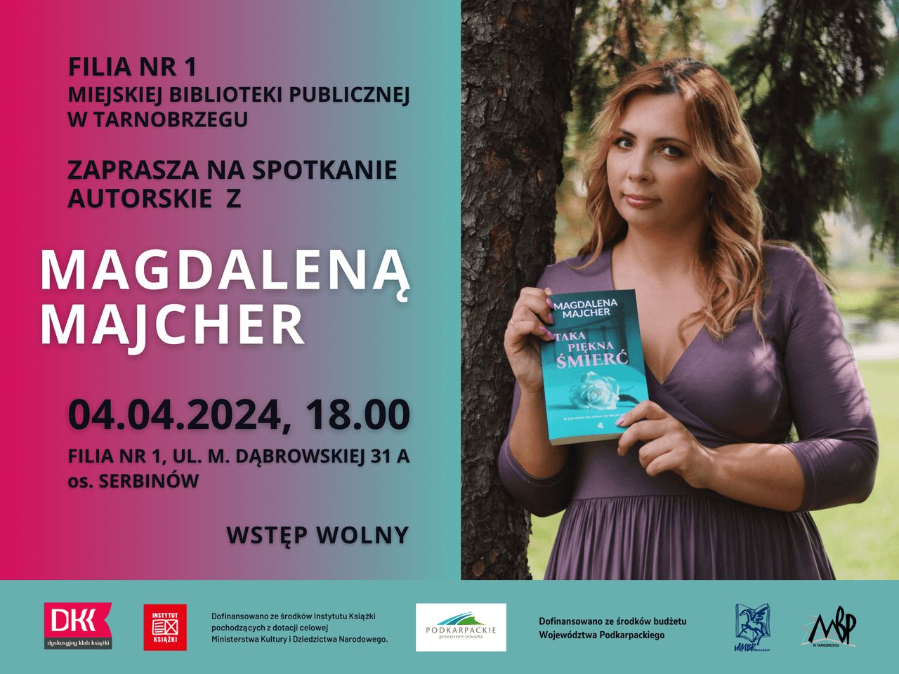 W Filii nr 1 Miejskiej Biblioteki Publicznej w Tarnobrzegu działającej na os. Serbinów, 4 kwietnia 2024 roku mieliśmy przyjemność gościć Panią Magdalenę Majcher, autorkę poczytnych powieści. Cenionych wśród czytelników za realizm i poruszanie trudnych życiowych tematów, a w dodatku napisanych lekkim piórem.