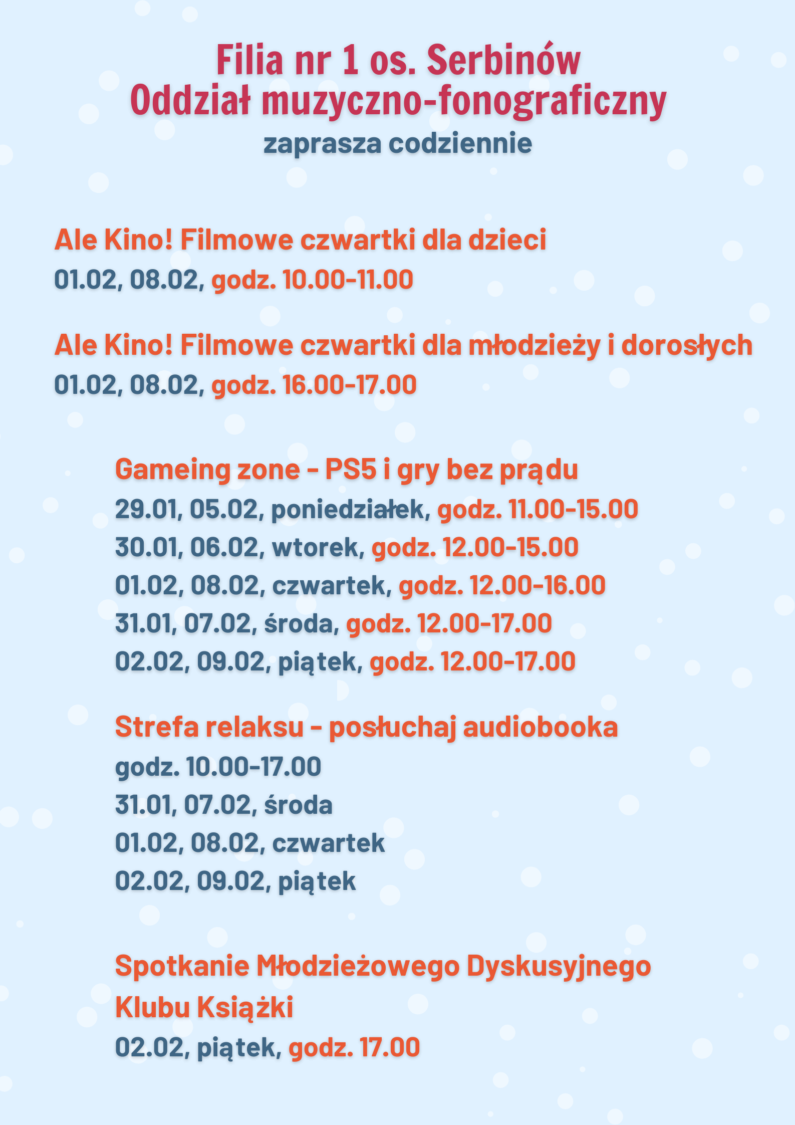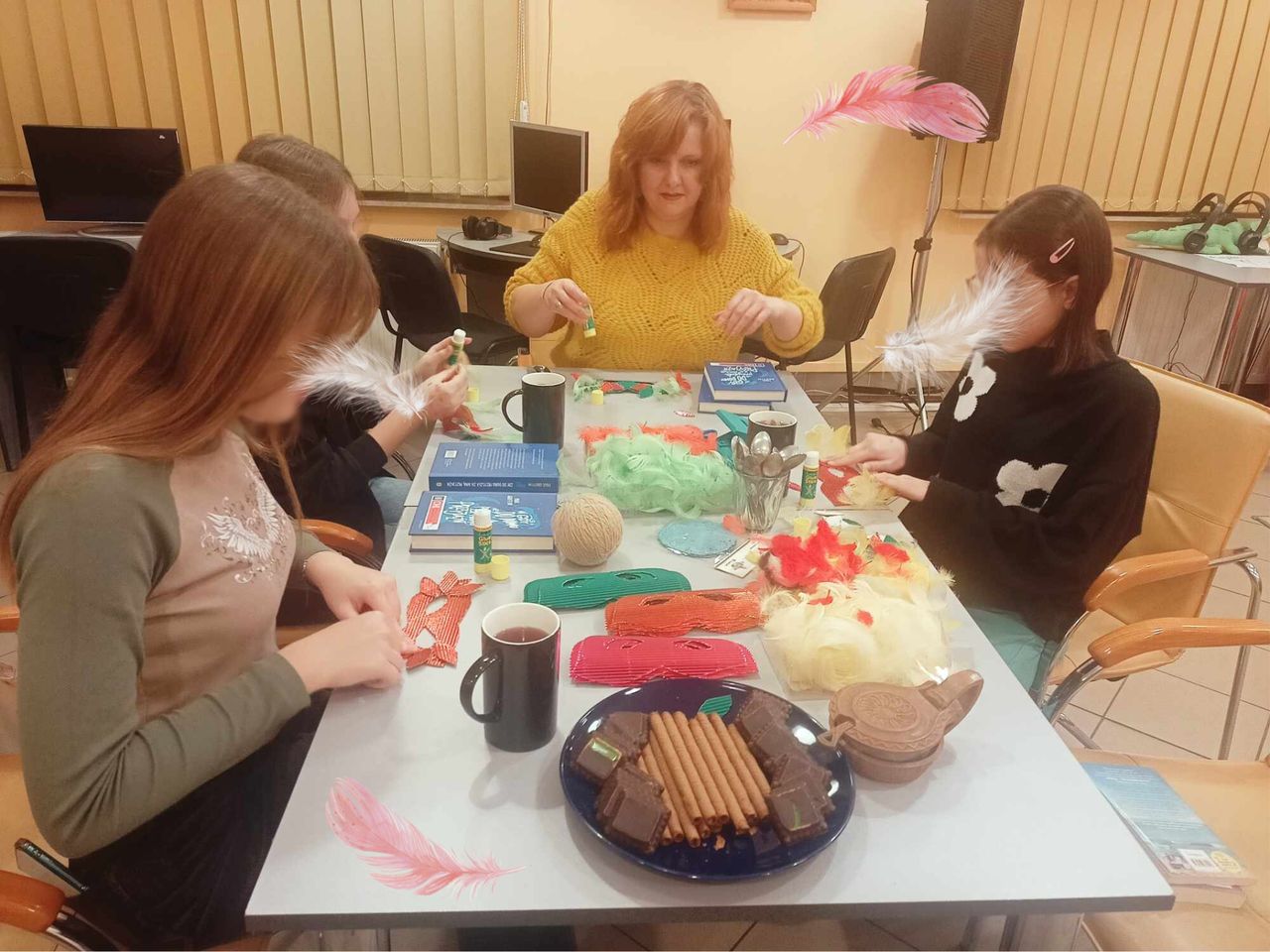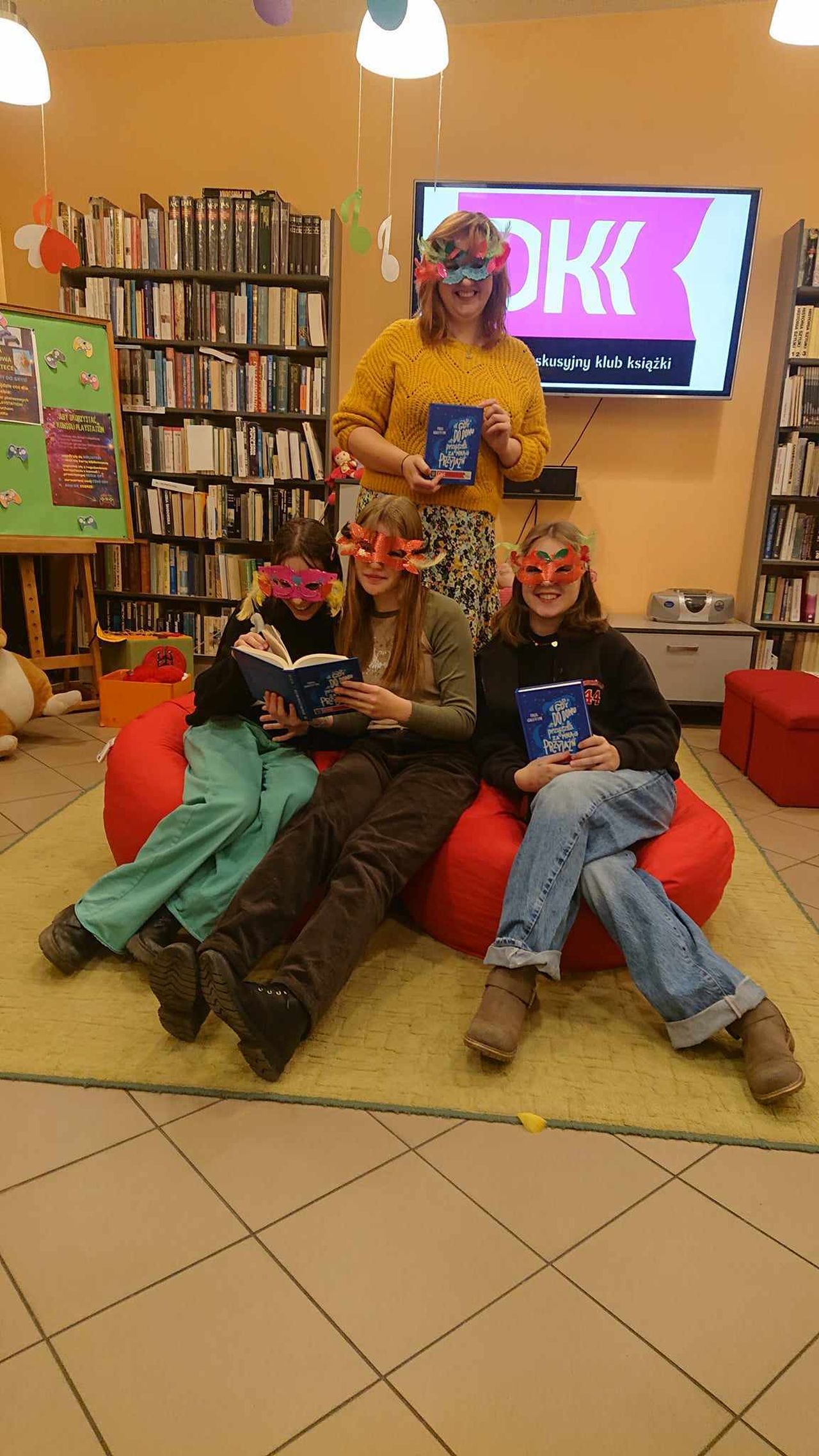 W te ferie odbyło się także, pierwsze w tym roku, spotkanie Młodzieżowego Dyskusyjnego Klubu Książki, na którym uczestniczki dyskutowały o książce pt. „Gdy do domu przyszła za mną przyjaźń” autorstwa Paula Griffina a także wykonały kolorowe maski karnawałowe.