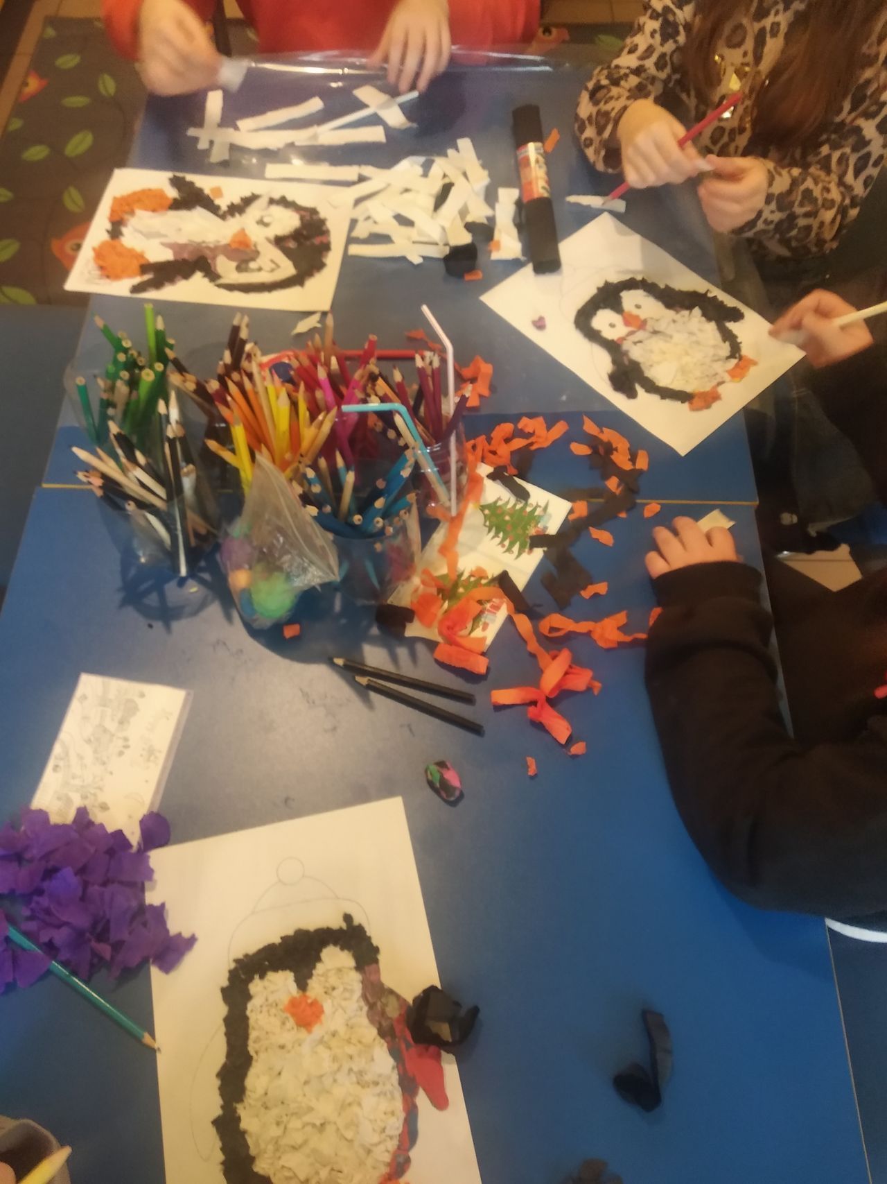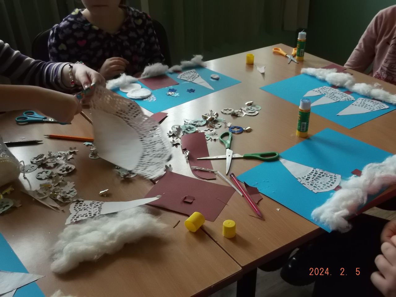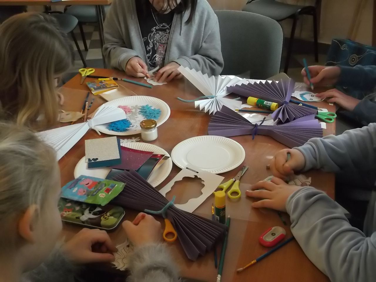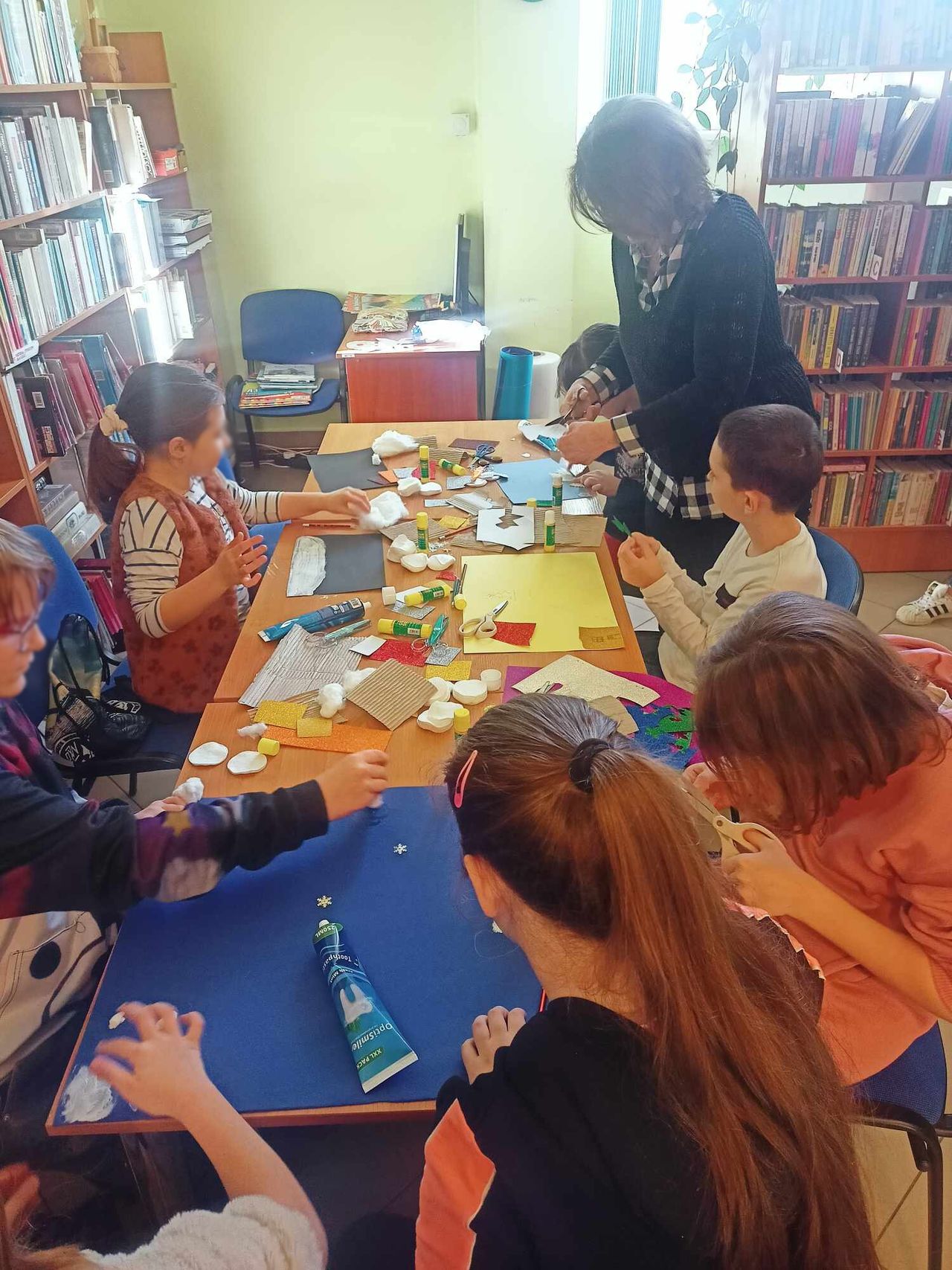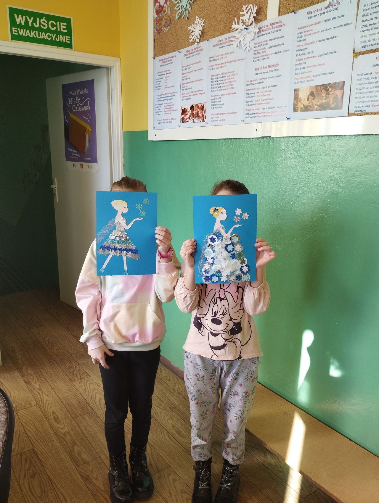 Z kolei na – uwielbianych przez dzieci – zajęciach plastycznych – powstały niepowtarzalne dzieła, których tematyką była głównie zima, bałwanki, mróz, ale również pingwinki, ptaszki czy żabki. Uczestnicy mieli także okazję stworzyć prace technikami niełatwymi i niezwykle spektakularnymi. Wyczarowały serca wykonane metodą Iris foldig, rozetki i pomysłowe zwierzaki, do których użyły techniki qullingu, jak również książki tunelowe.