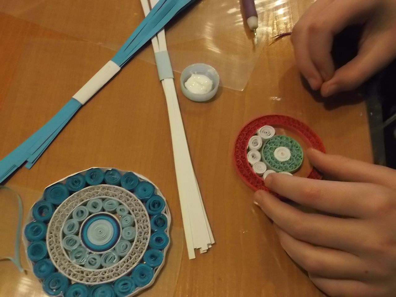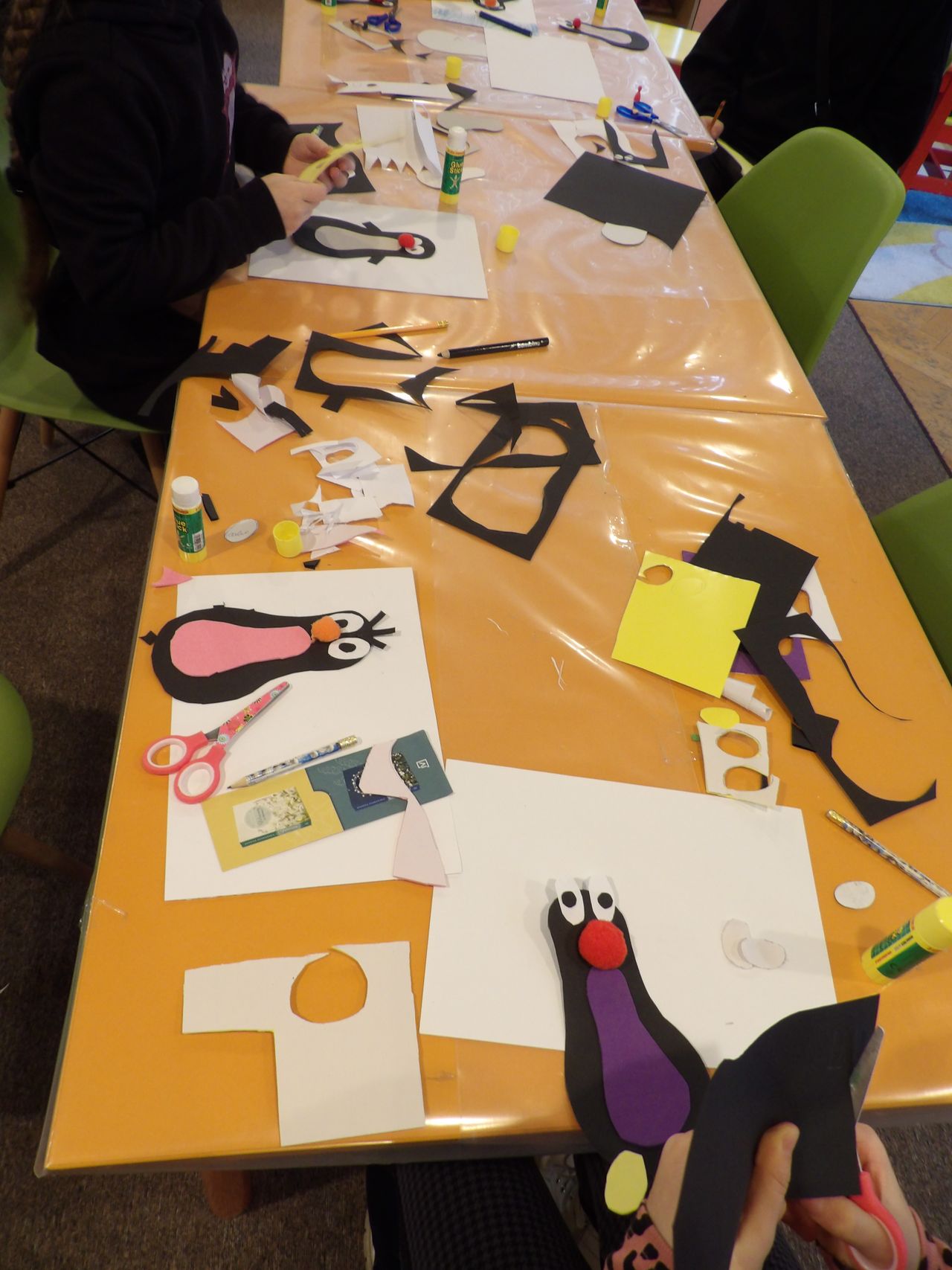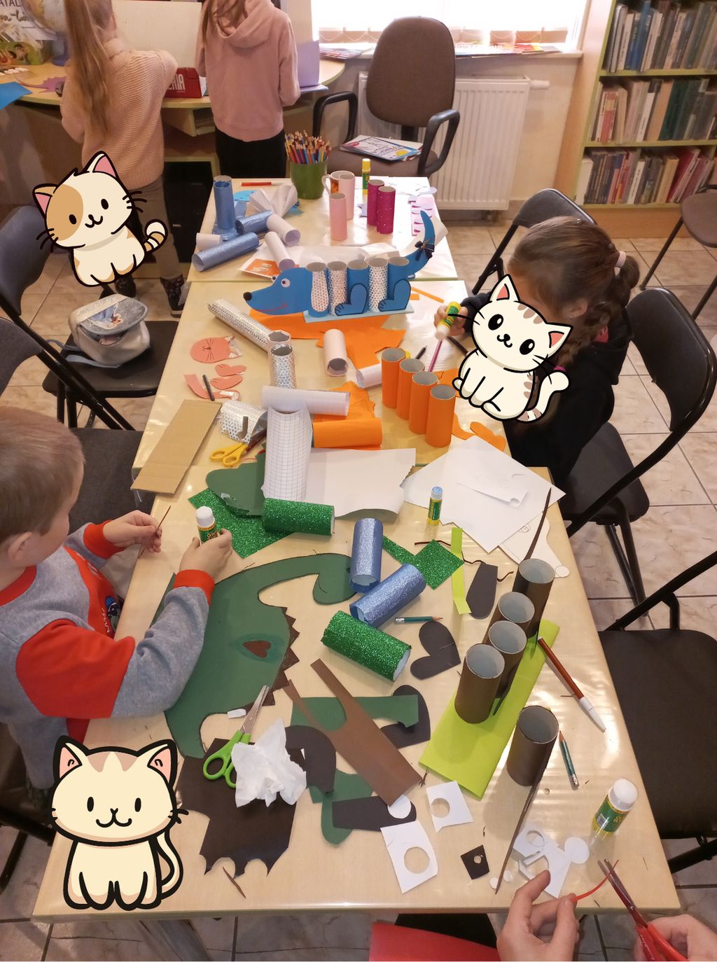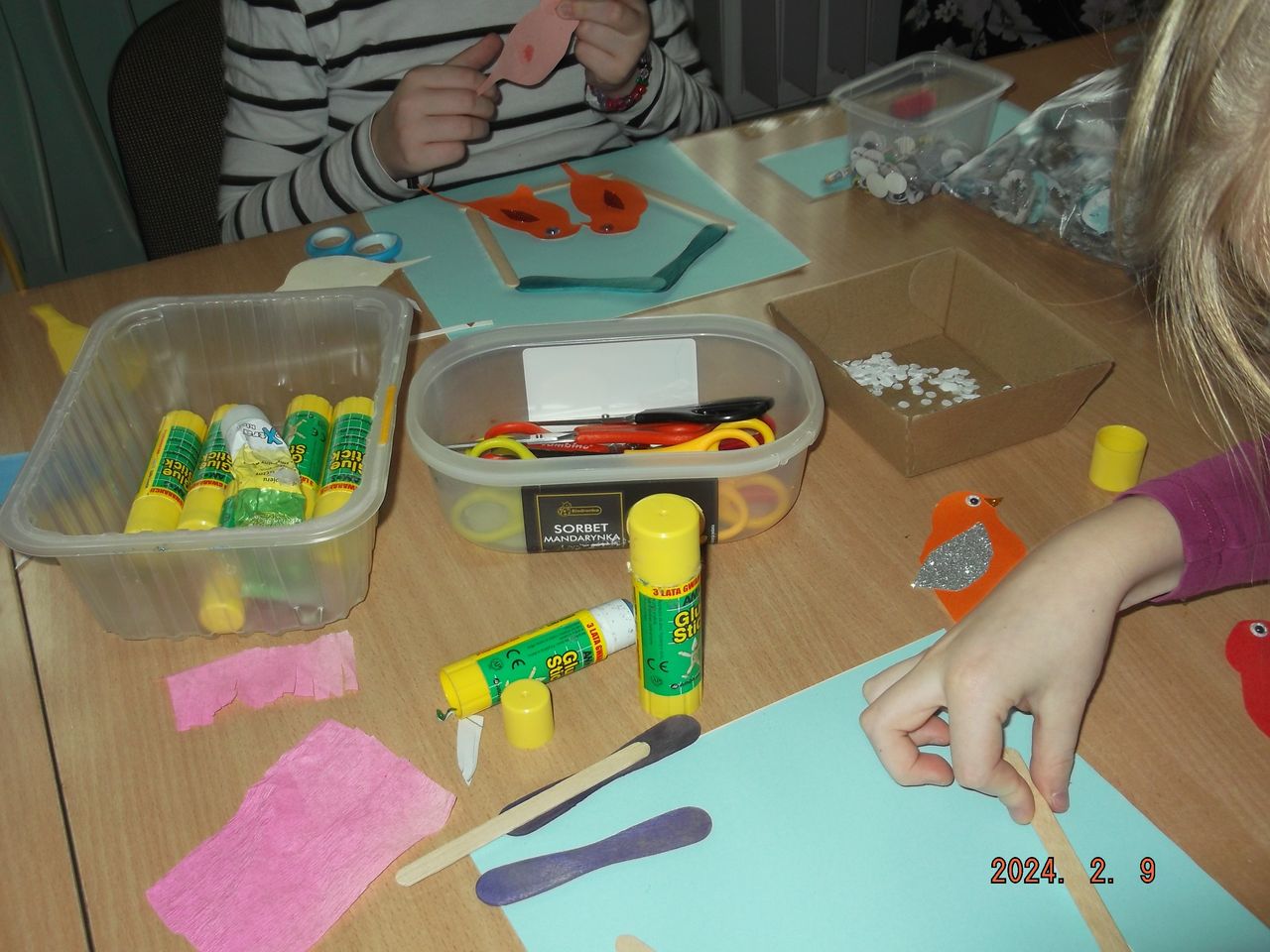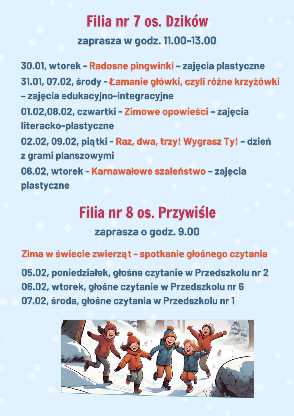 Z kolei na – uwielbianych przez dzieci – zajęciach plastycznych – powstały niepowtarzalne dzieła, których tematyką była głównie zima, bałwanki, mróz, ale również pingwinki, ptaszki czy żabki. Uczestnicy mieli także okazję stworzyć prace technikami niełatwymi i niezwykle spektakularnymi. Wyczarowały serca wykonane metodą Iris foldig, rozetki i pomysłowe zwierzaki, do których użyły techniki qullingu, jak również książki tunelowe.