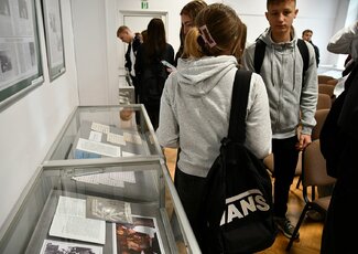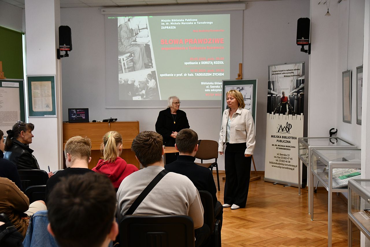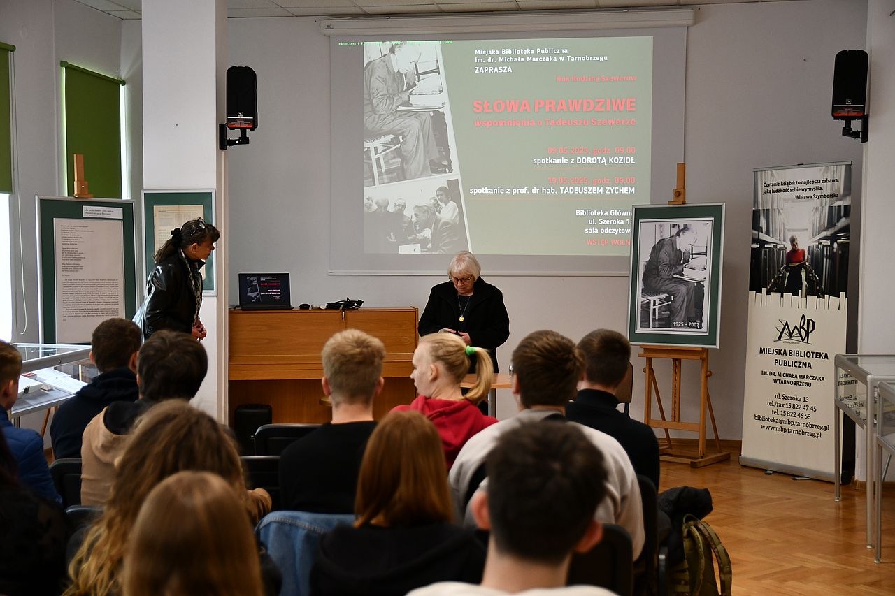 Spotkania, w których uczestniczyła młodzież tarnobrzeskich szkół średnich, były swoistym uzupełnieniem prezentowanej w Bibliotece do 30 maja 2025 roku wystawy "Dokumentalista lat minionych – Tadeusz Szewera w 100. rocznicę urodzin".