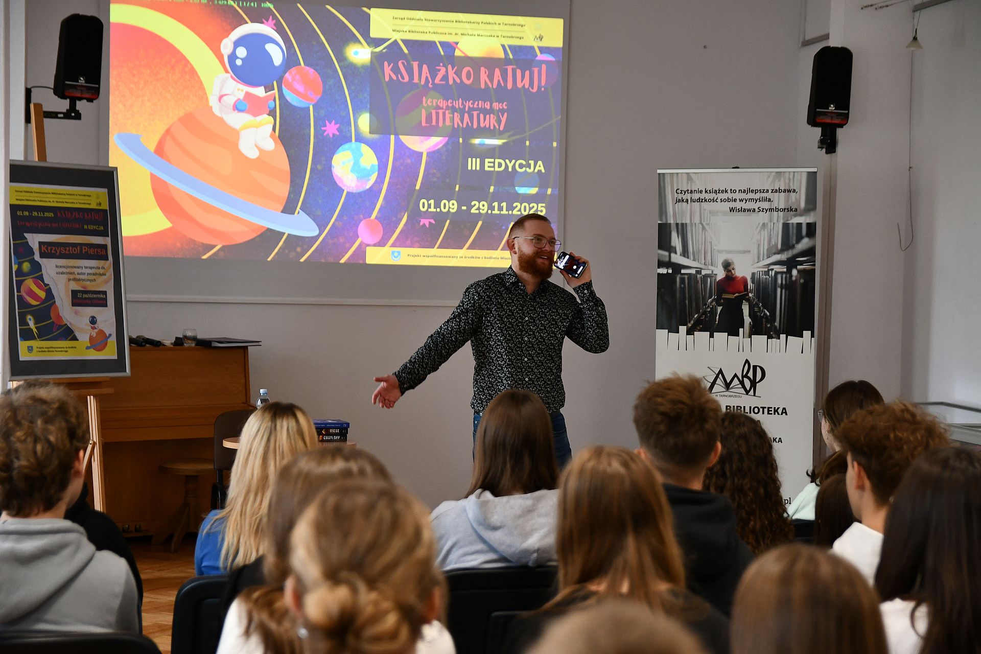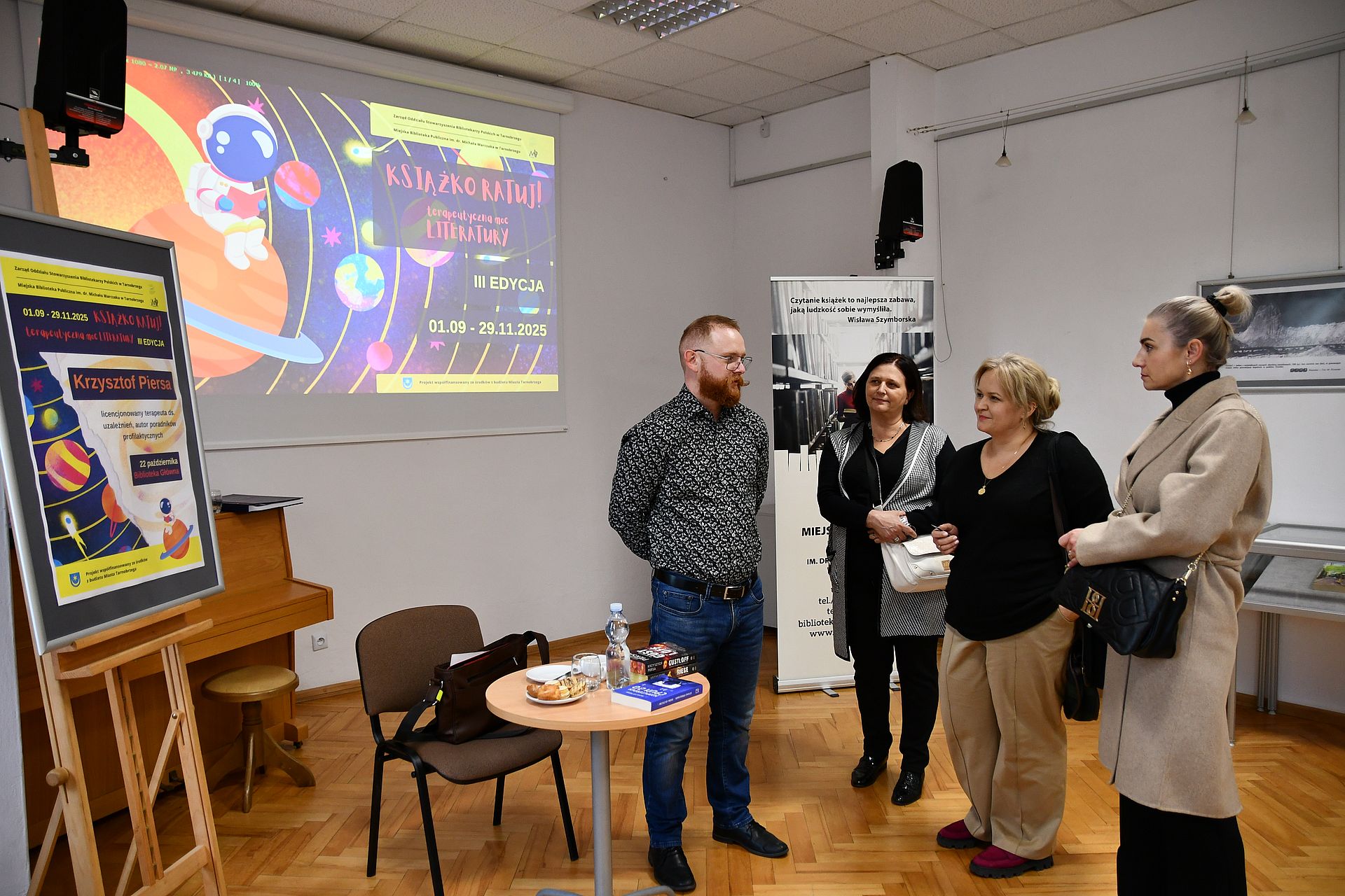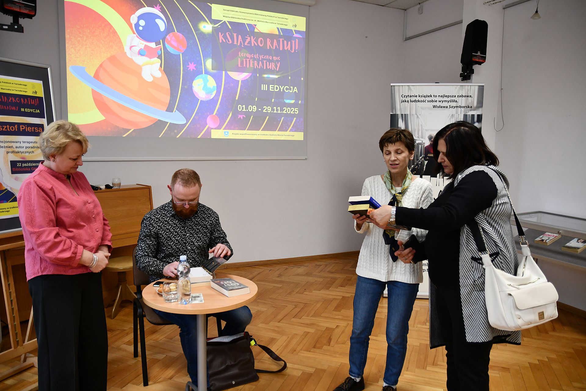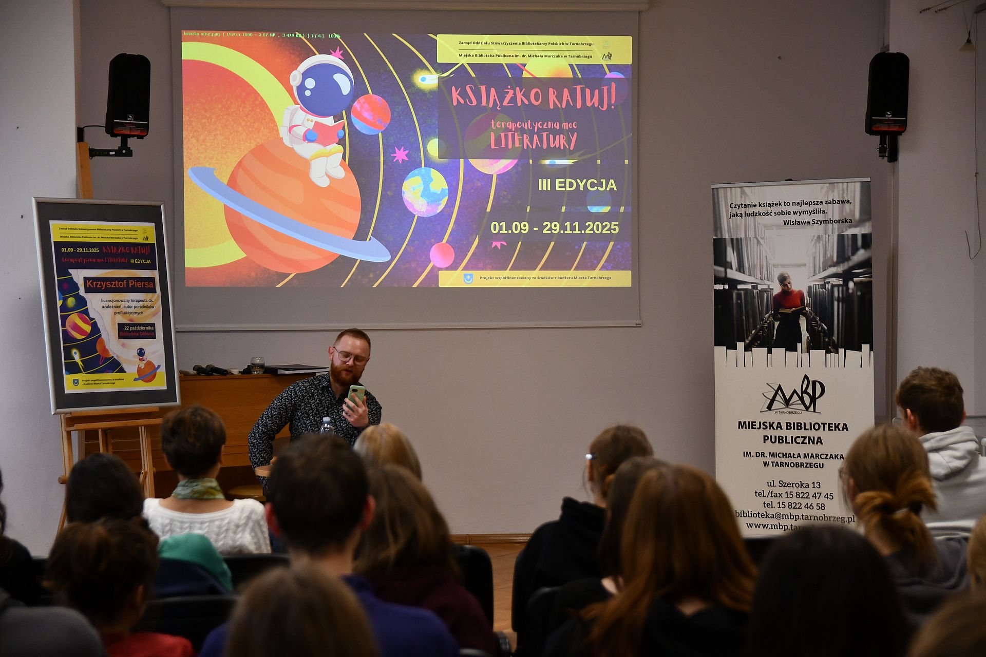 Na kolejnym ostatnim już spotkaniu autorskim w ramach 3 edycji realizacji zadania publicznego "Książko ratuj! Terapeutyczna moc literatury” w Bibliotece Głównej gościł Krzysztof Piersa – dziennikarz gamingowy i kulturalny, terapeuta, specjalista w dziedzinie uzależnień od nowoczesnych technologii i cyberzagrożeń oraz autor poradników profilaktycznych "Komputerowy Ćpun" i "Trener Marzeń”.