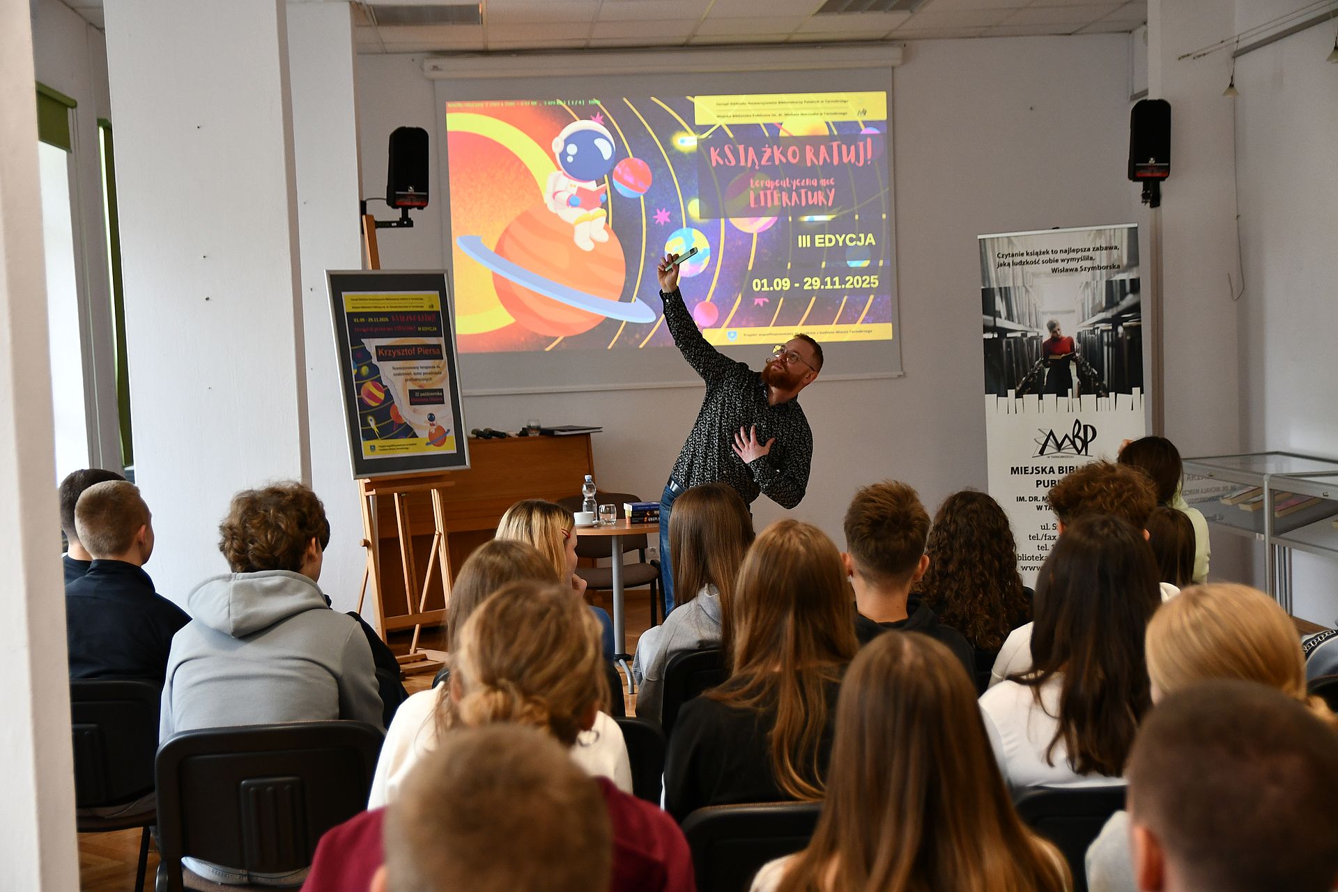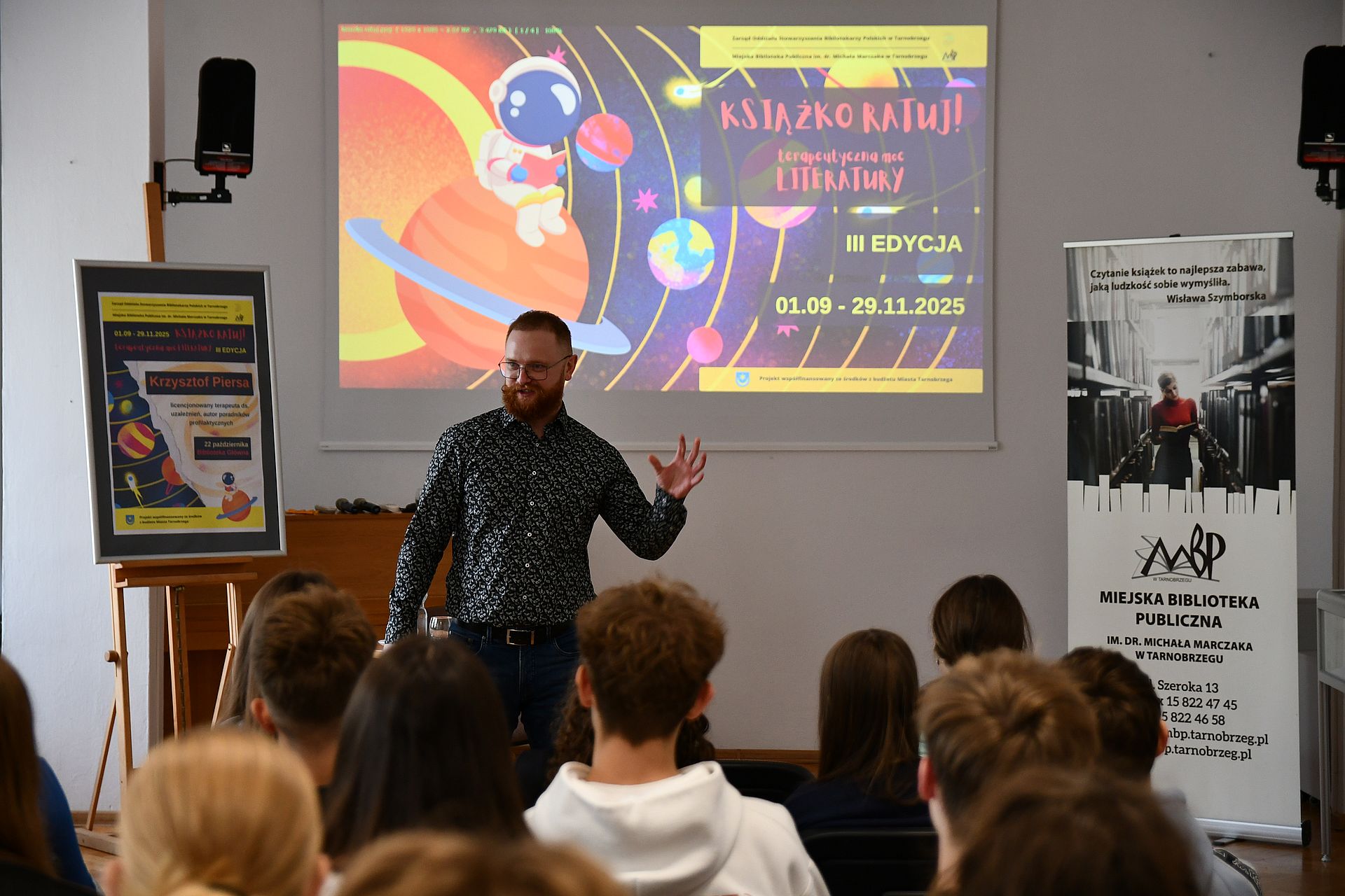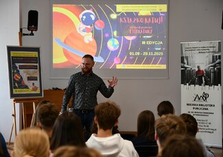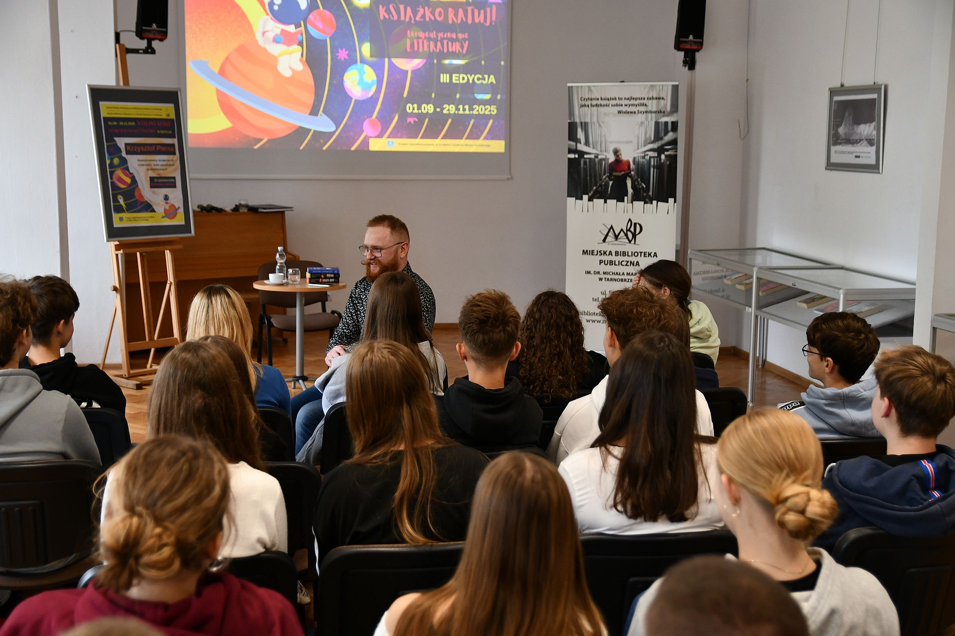 Na kolejnym ostatnim już spotkaniu autorskim w ramach 3 edycji realizacji zadania publicznego "Książko ratuj! Terapeutyczna moc literatury” w Bibliotece Głównej gościł Krzysztof Piersa – dziennikarz gamingowy i kulturalny, terapeuta, specjalista w dziedzinie uzależnień od nowoczesnych technologii i cyberzagrożeń oraz autor poradników profilaktycznych "Komputerowy Ćpun" i "Trener Marzeń”.