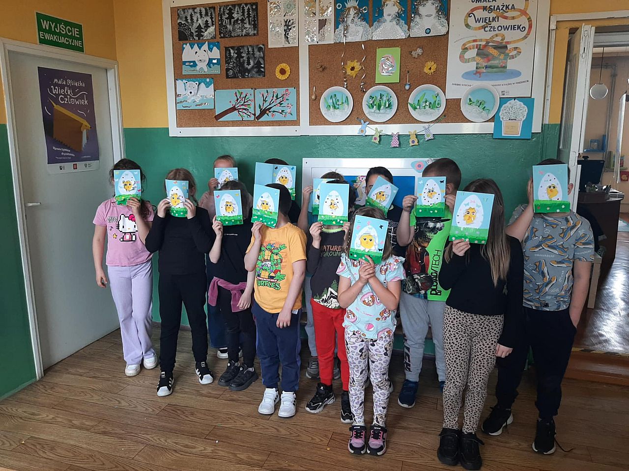 Tematem wielu kwietniowych zajęć organizowanych w Bibliotece była zbliżająca się Wielkanoc. Przedszkolaki wzięły udział w zajęciach literacko-plastycznych, w trakcie których wysłuchały ciekawych opowiastek z książki „Wielkanoc w Kisielicach Małych”, spisanych przez J. Krzyżanek ze wspomnień babci Antoniny i dziadka Antoniego. Udekorowały w grupach przygotowane szablony jaj, które podziwiać można w Galerii Jedynki. W specjalnie przygotowanej kreatywnej strefie uczestnicy zajęć plastycznych wykonali prace z wytłaczanek po jajkach i kolorowej bibuły, które niewątpliwie staną się ciekawym sposobem na przyozdobienie wielkanocnego stołu. Zbliżająca się Wielkanoc była także pretekstem do wizyty uczniów szkoły podstawowej w bibliotece i aktywnego spędzenia czasu na rozwiązywaniu łamigłówek w świątecznych numerów Świerszczyk. Wysłuchały także kilku wierszy i opowiadań zawartych w tym popularnym czasopiśmie. Następnie wykonały pracę plastyczną – pracę świąteczną z motywem wykluwającego się z pisanki pisklaka.