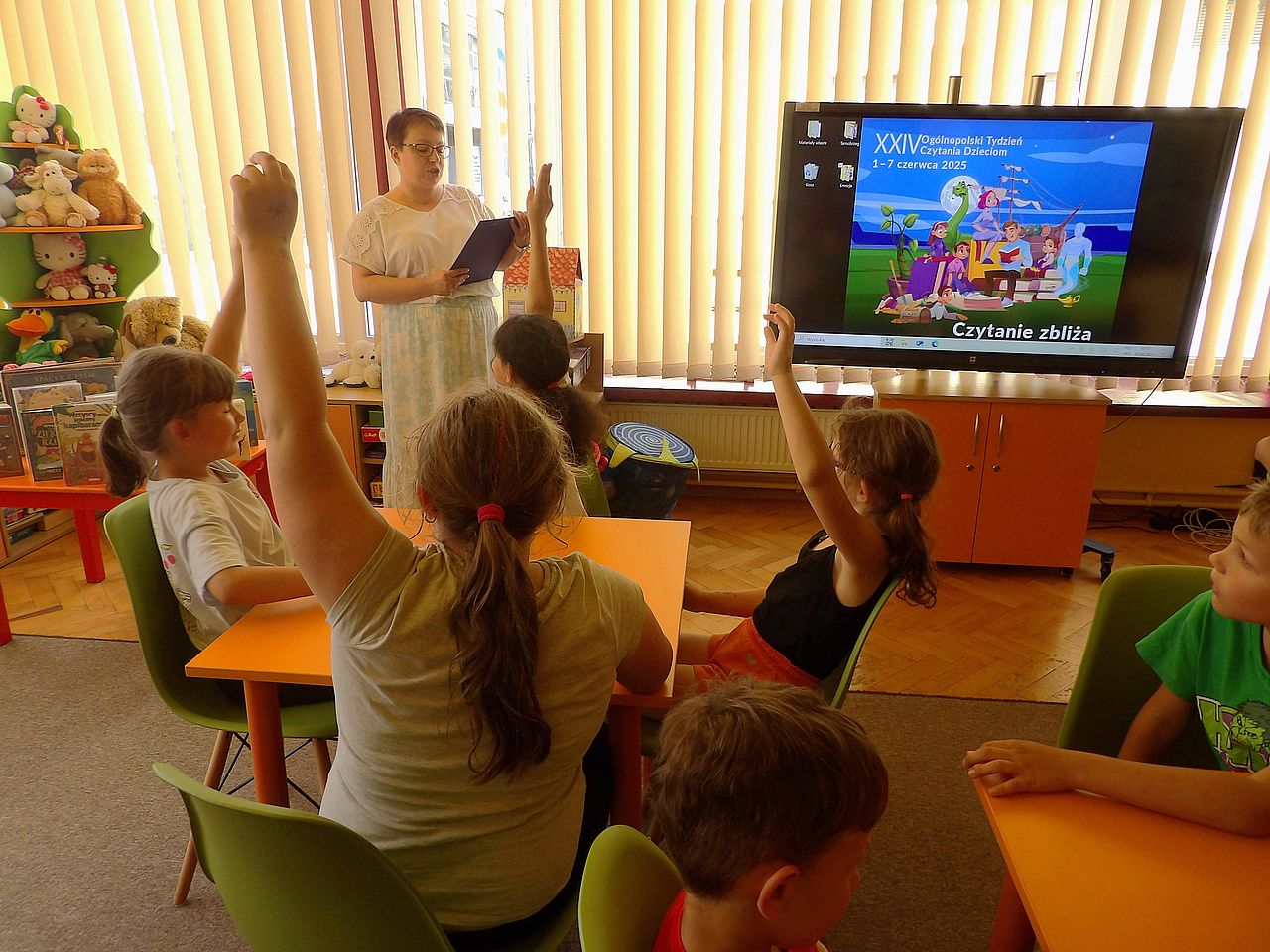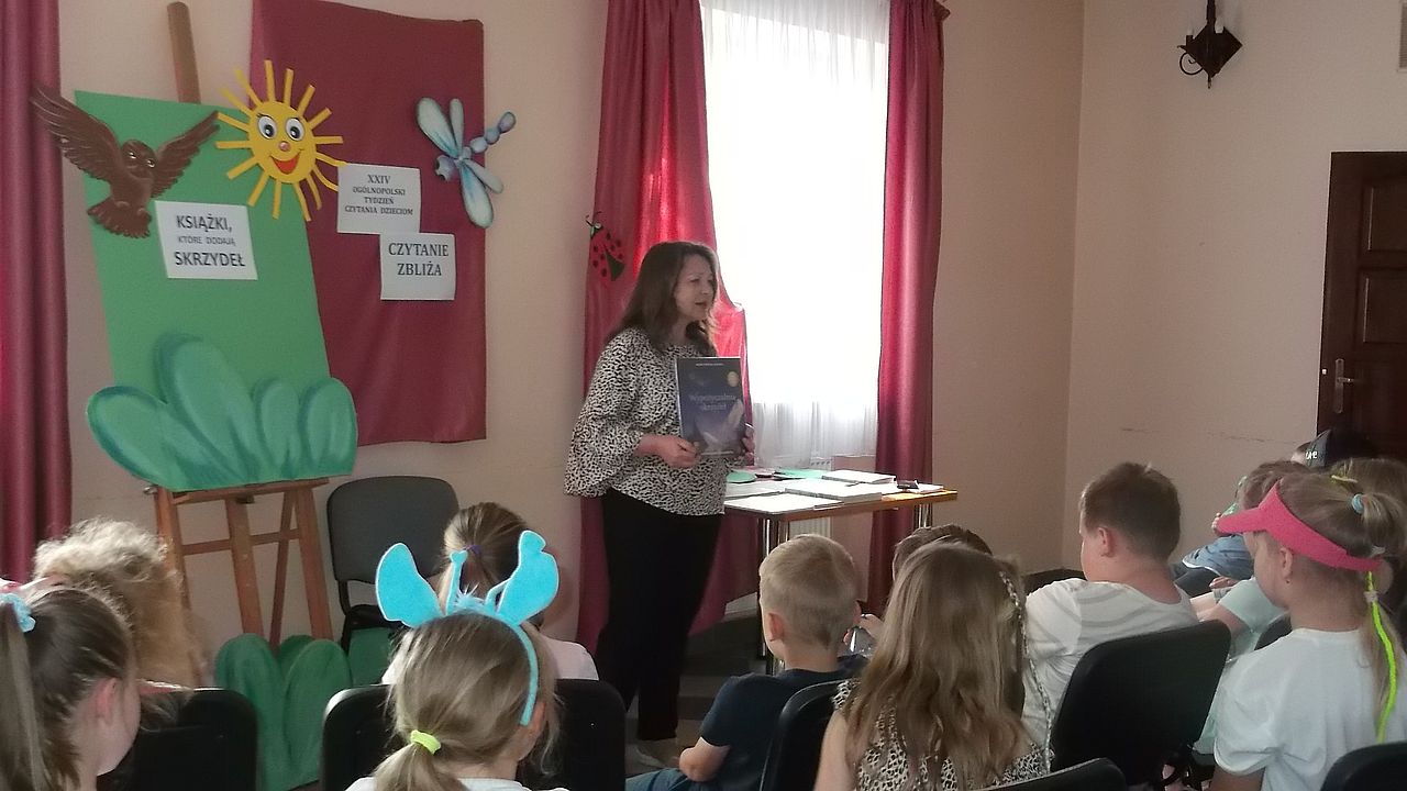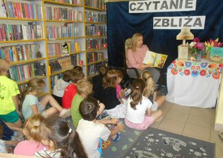 24 Ogólnopolski Tydzień Czytania Dzieciom odbył się w dniach 1-7 czerwca pod hasłem: "Czytanie zbliża”. Tegoroczne hasło promuje wspólne czytanie, które buduje więzi, zbliża do kultury, zachęca do rozmów i bliskości międzypokoleniowej. Poprzez czytanie dzieciom mądrych książek przekazujemy im wartości moralne tj. szacunek, uczciwość, przyjaźń, odpowiedzialność czy życzliwość, które pomagają budować dobre relacje z innymi i z samym sobą. W Miejskiej Bibliotece Publicznej im. dr. Michała Marczaka Tydzień Czytania Dzieciom przez cały tydzień odbywały się głośne czytania, spotkania z książką oraz zajęcia literacko-plastyczne. Dla najmłodszych znane i lubiane bajki tj. "Calineczka”, "Kot w butach” czy "Czerwony Kapturek” czytała młodzieżowa grupa teatralna Tarnobrzeskiego Domu Kultury pod opieką artystyczną Agnieszki Mroczki. Dzięki ciekawej aranżacji utworów wzbogaconej akcentami muzycznymi dzieci mogły poczuć się "jak w bajce”. Podczas spotkań z książką przedszkolaki i uczniowie mogli posłuchać o sile współdziałania i bycia razem, o mocy prawdziwej przyjaźni, o tym, czym jest empatia, o magii uśmiechu i życzliwości dla innych oraz że warto znać i wypowiadać zaczarowane słowa. Książki stały się pięknym pretekstem do rozmów o wartościach płynących z czytania. Uczestnicy zgodnie stwierdzili, że książki pomagają lepiej poznać i zrozumieć otaczający nas świat, są skarbnicą wiedzy i informacji, źródłem wspólnej radości, dzięki książkom można miło i ciekawie spędzić czas z rodziną, poznać nowe słownictwo i budować więzi. Dzieci także chętnie podzieliły się odczuciami i emocjami, jakie towarzyszą im podczas czytania książek. Wśród nich wymieniły: radość, zaciekawienie, spokój czy wzruszenie. Wykazały się również świetną znajomością bajek, które bezbłędnie rozpoznawały po usłyszeniu krótkiego ich fragmentu.